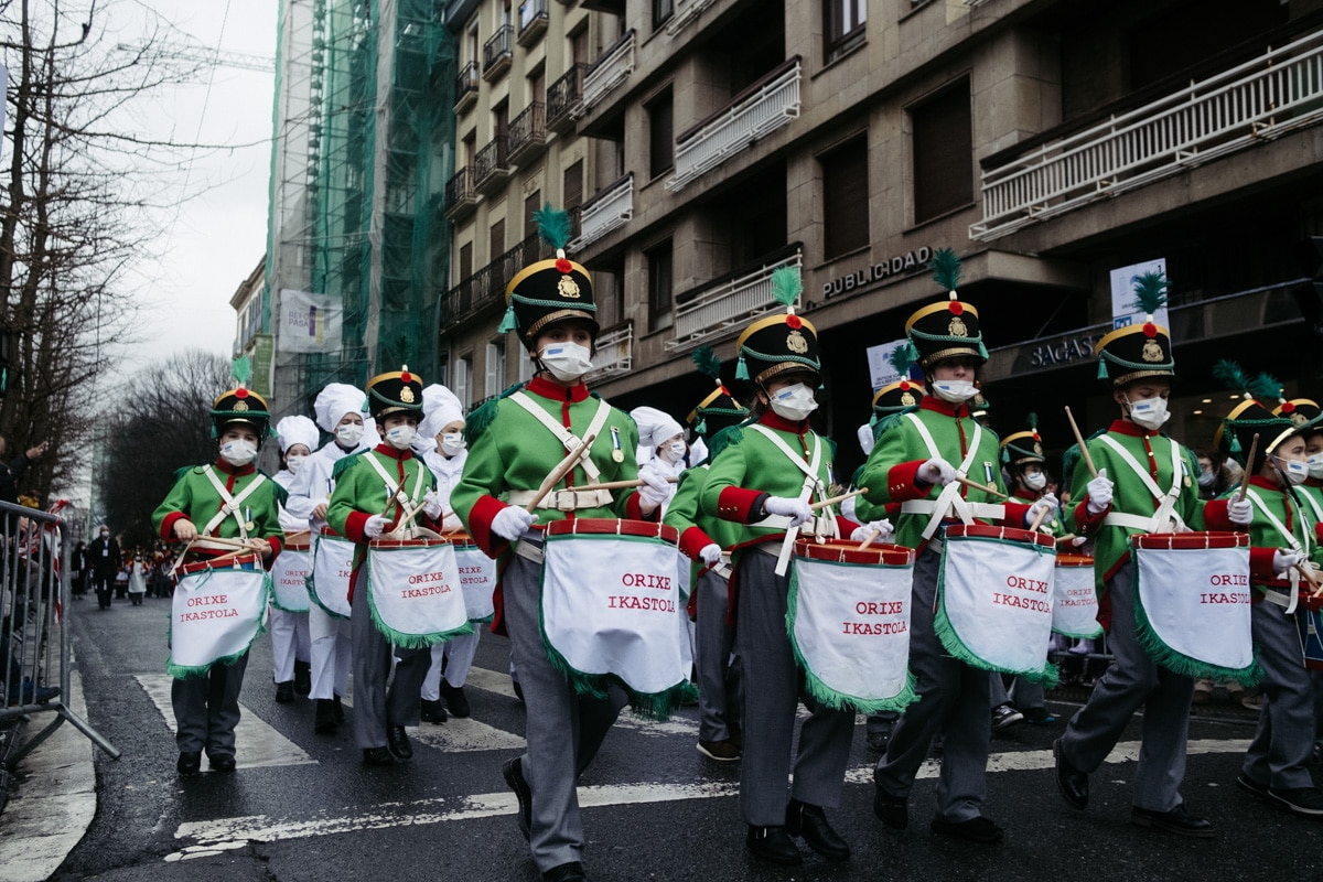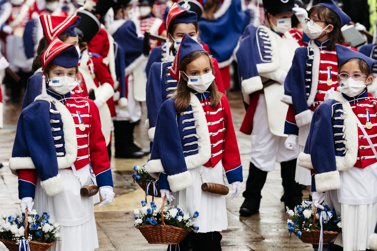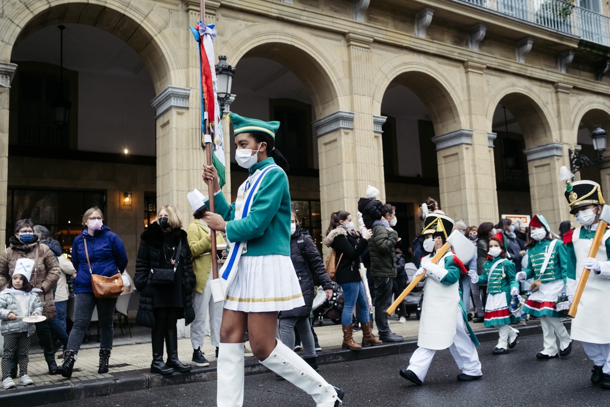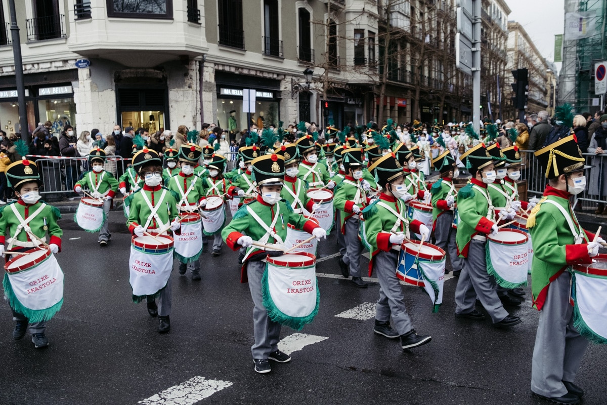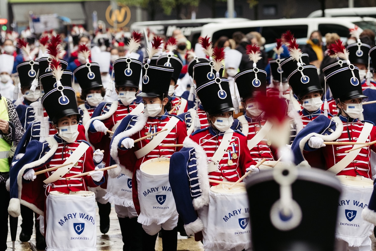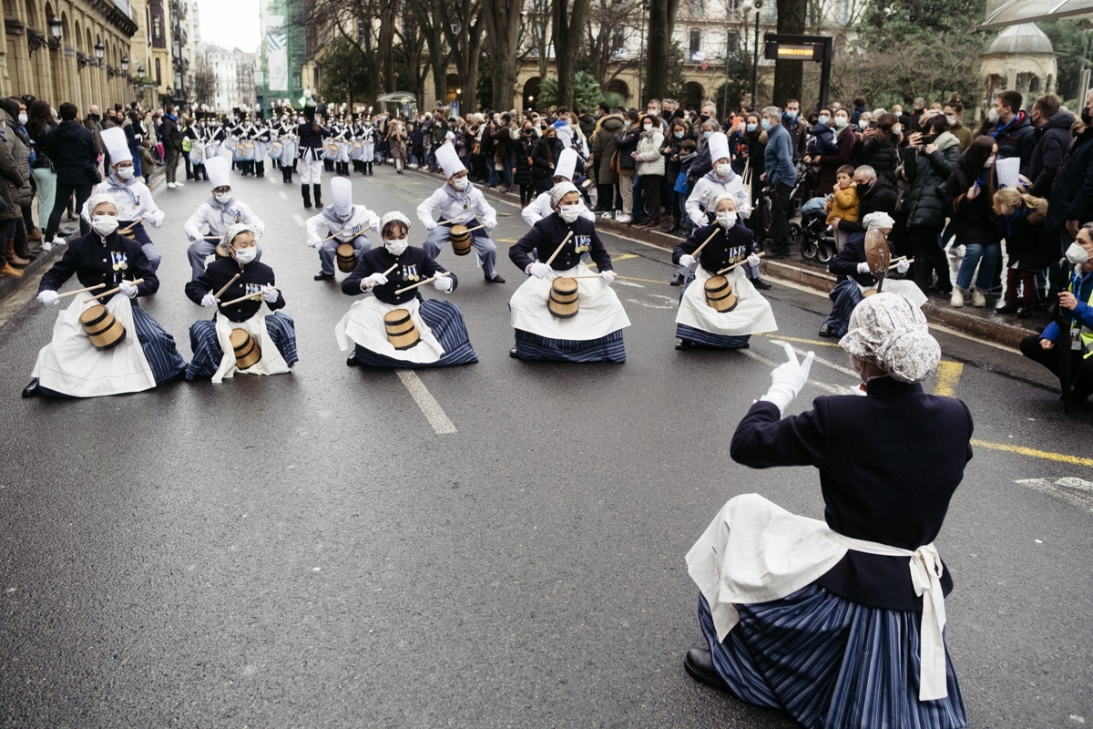 La Tamborrada infantil de este mediodía en Donostia, con las compañías separadas en cinco trayectos distintos, evitando aglomeraciones y con distancias, pasará a la historia como ‘la tamborrada del covid’.