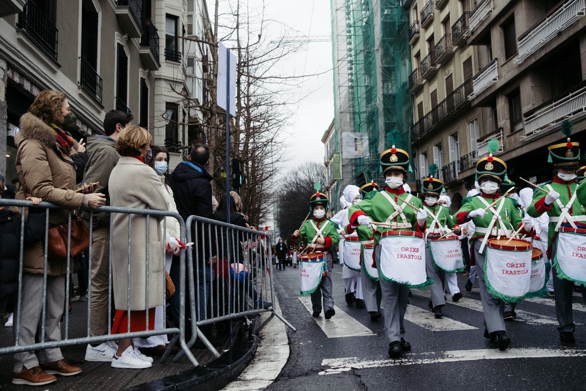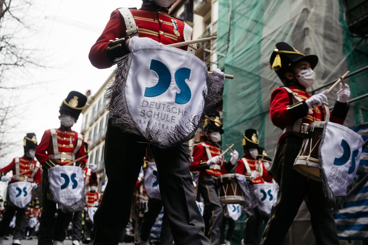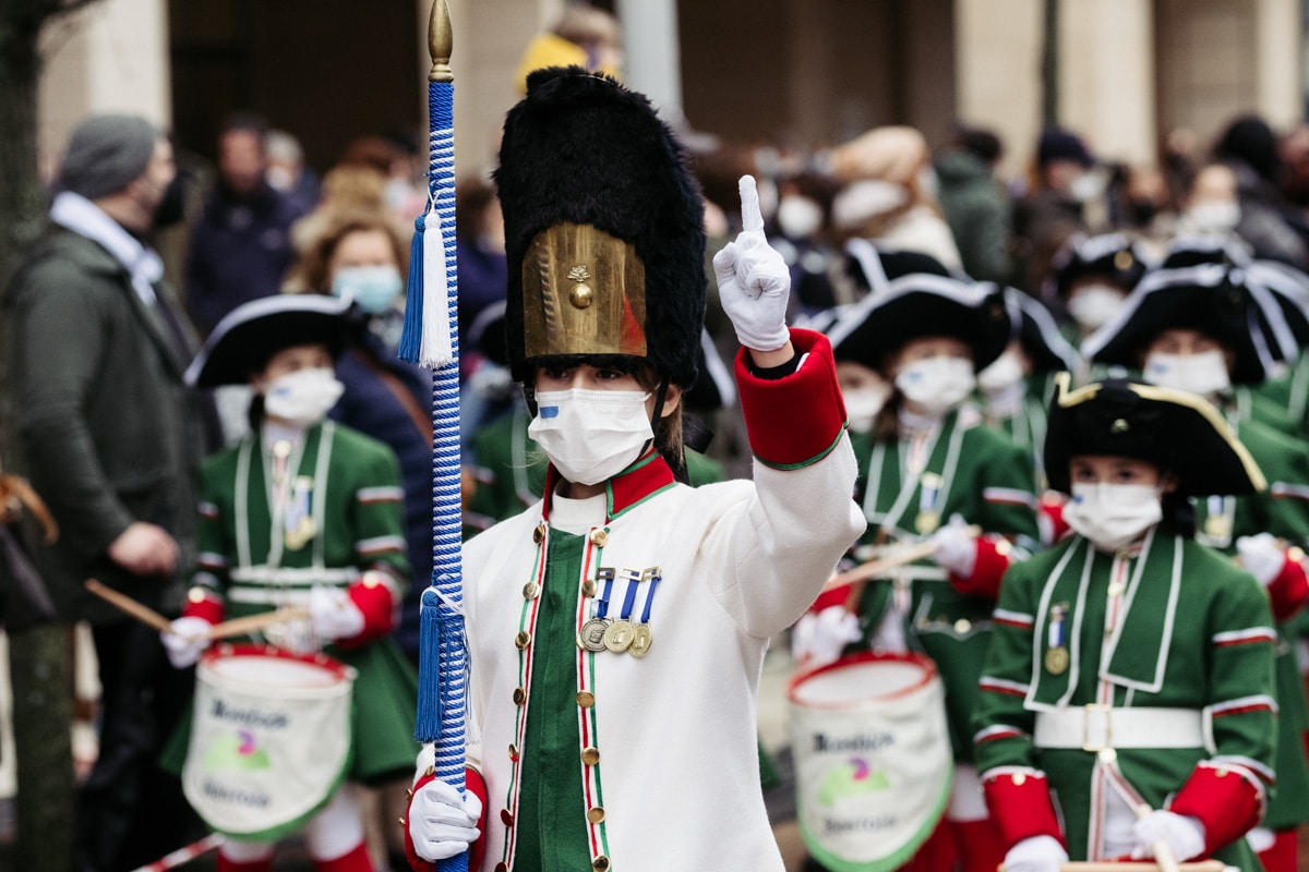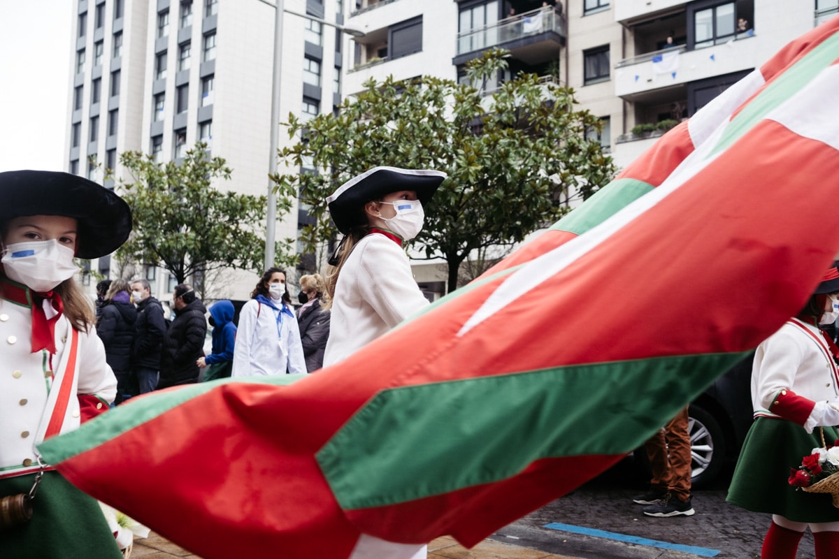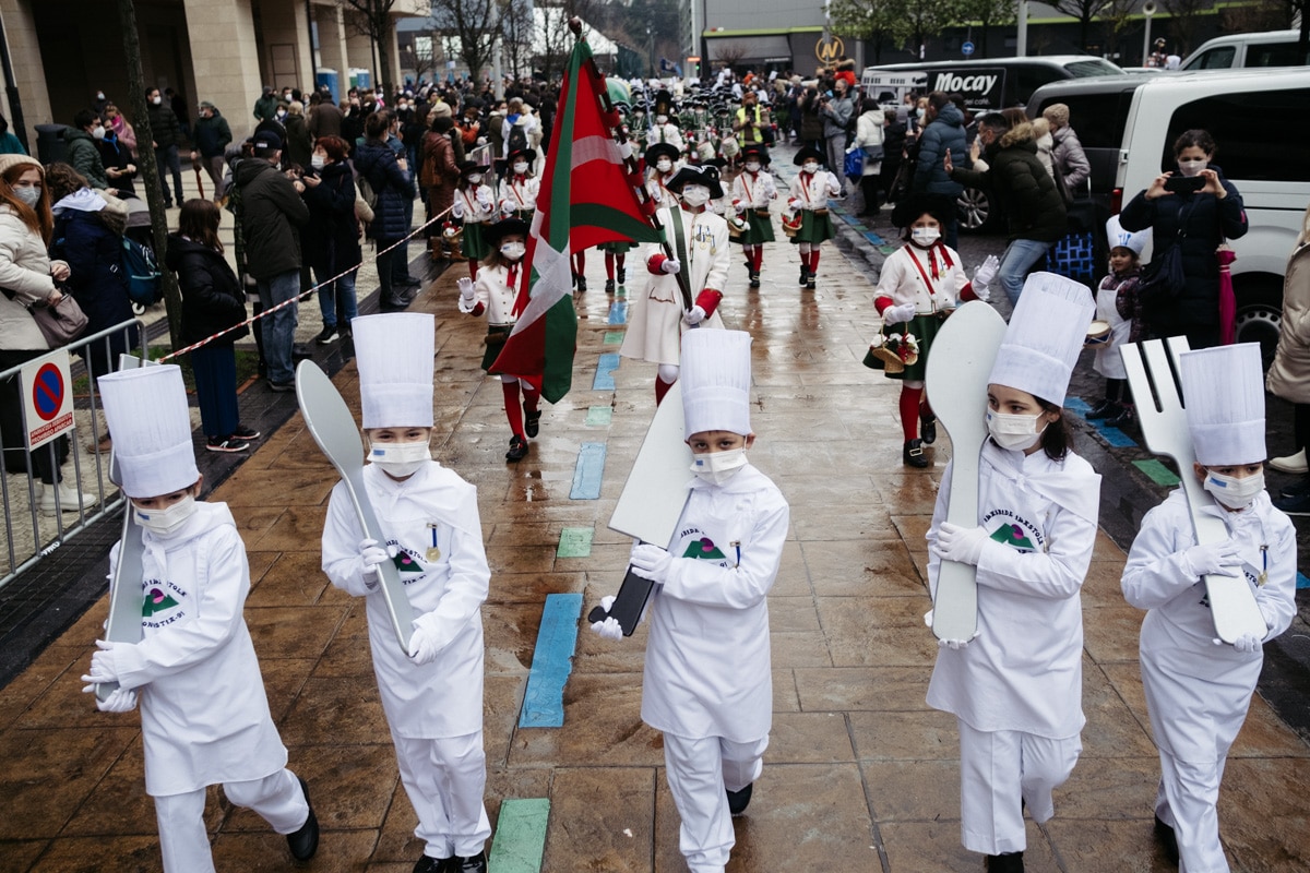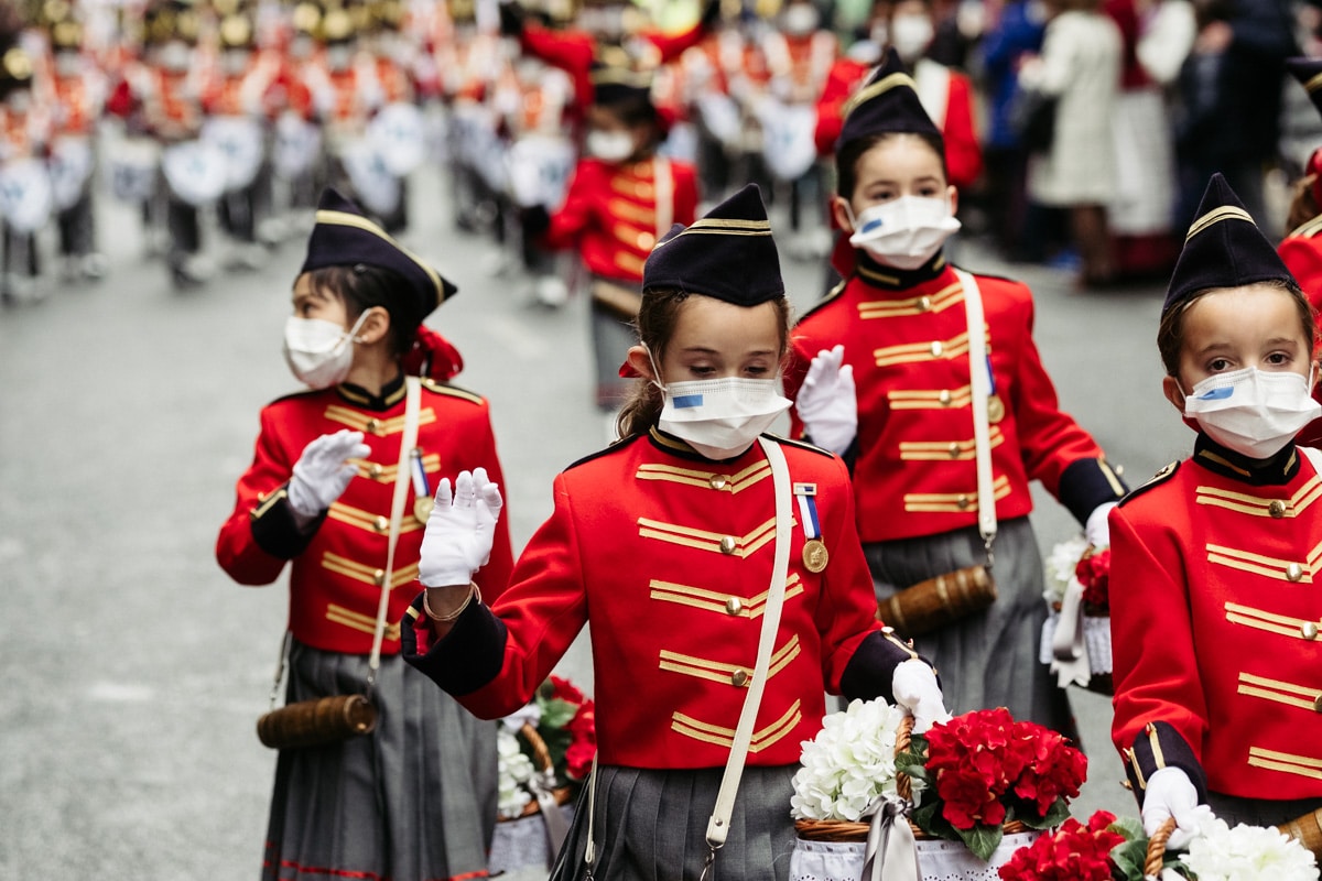 La Tamborrada infantil de este mediodía en Donostia, con las compañías separadas en cinco trayectos distintos, evitando aglomeraciones y con distancias, pasará a la historia como ‘la tamborrada del covid’.