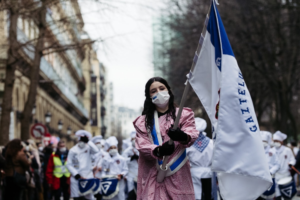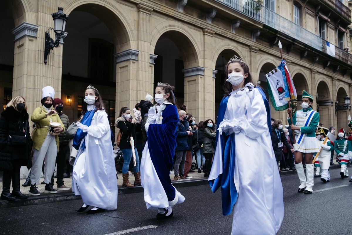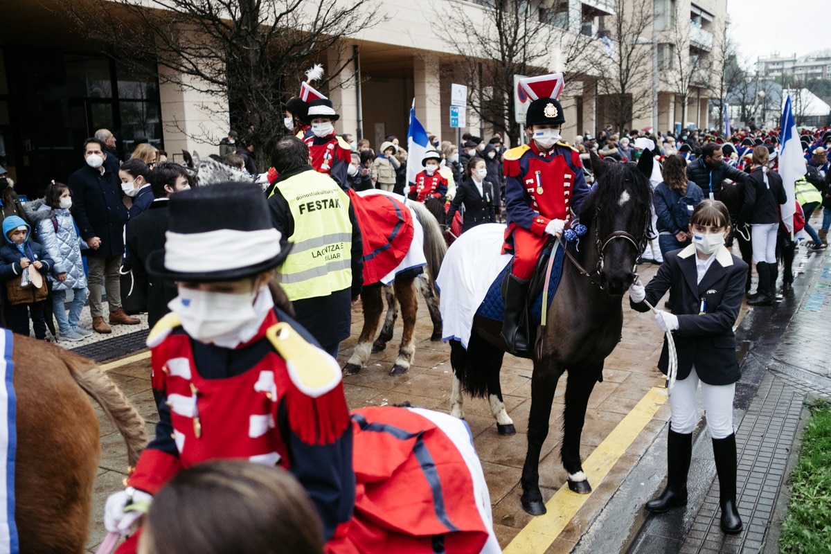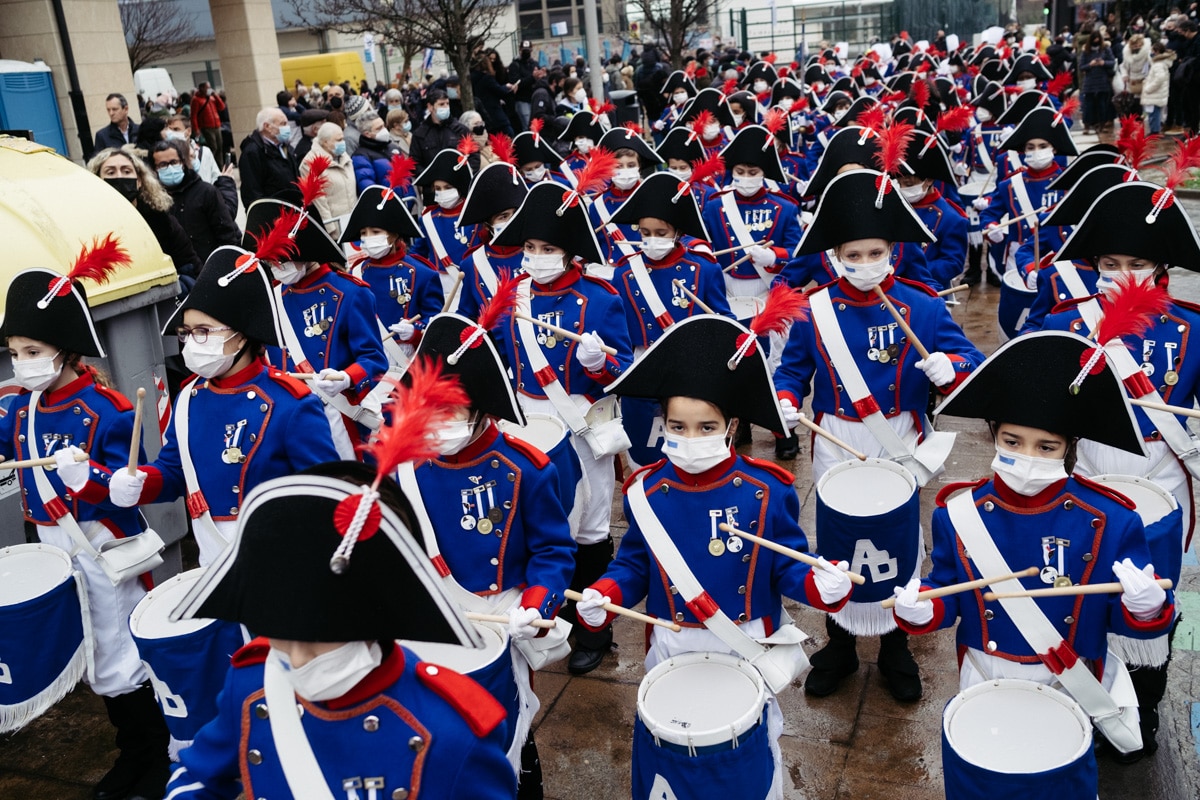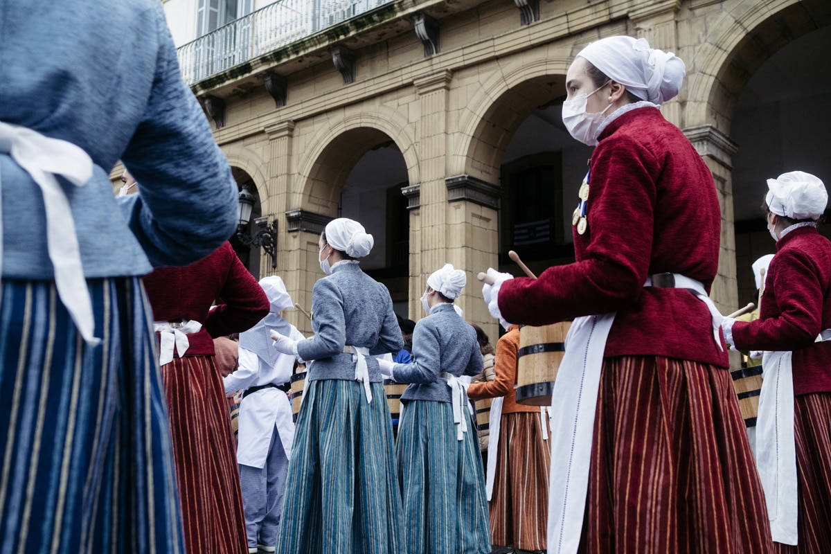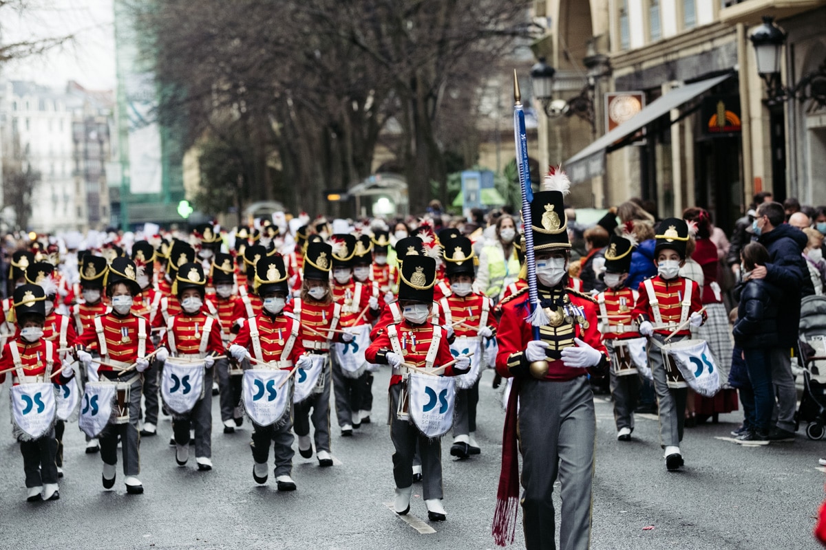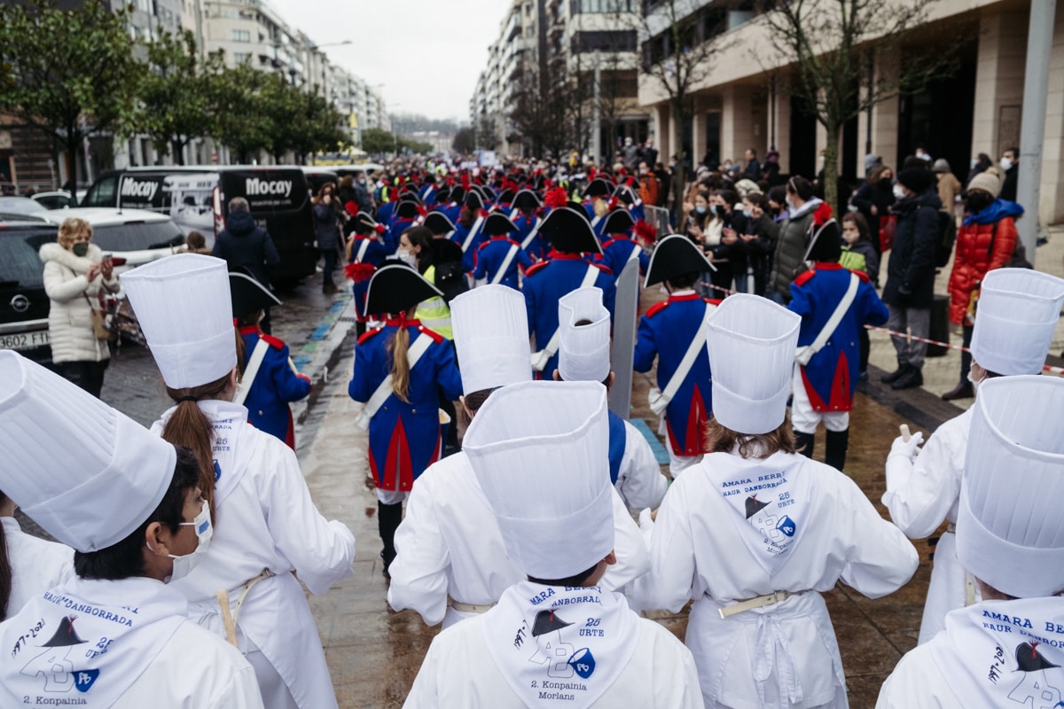 La Tamborrada infantil de este mediodía en Donostia, con las compañías separadas en cinco trayectos distintos, evitando aglomeraciones y con distancias, pasará a la historia como ‘la tamborrada del covid’.