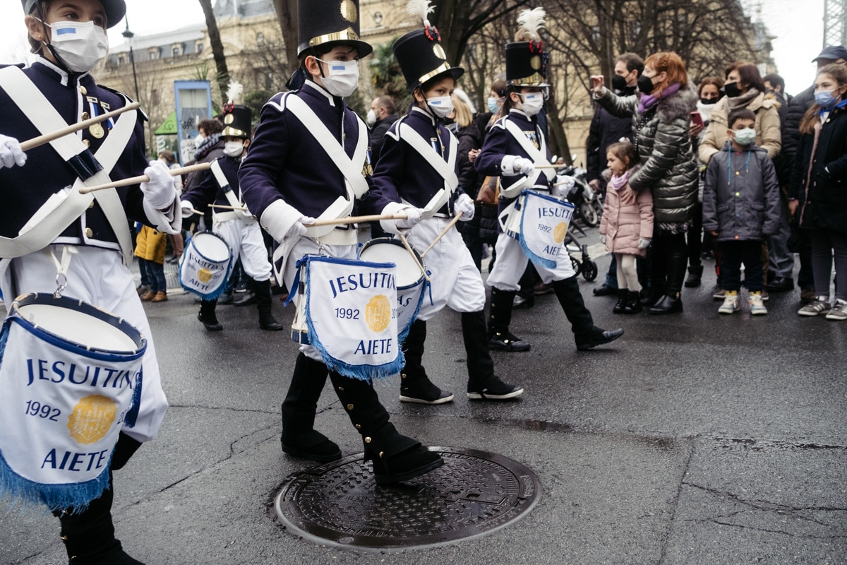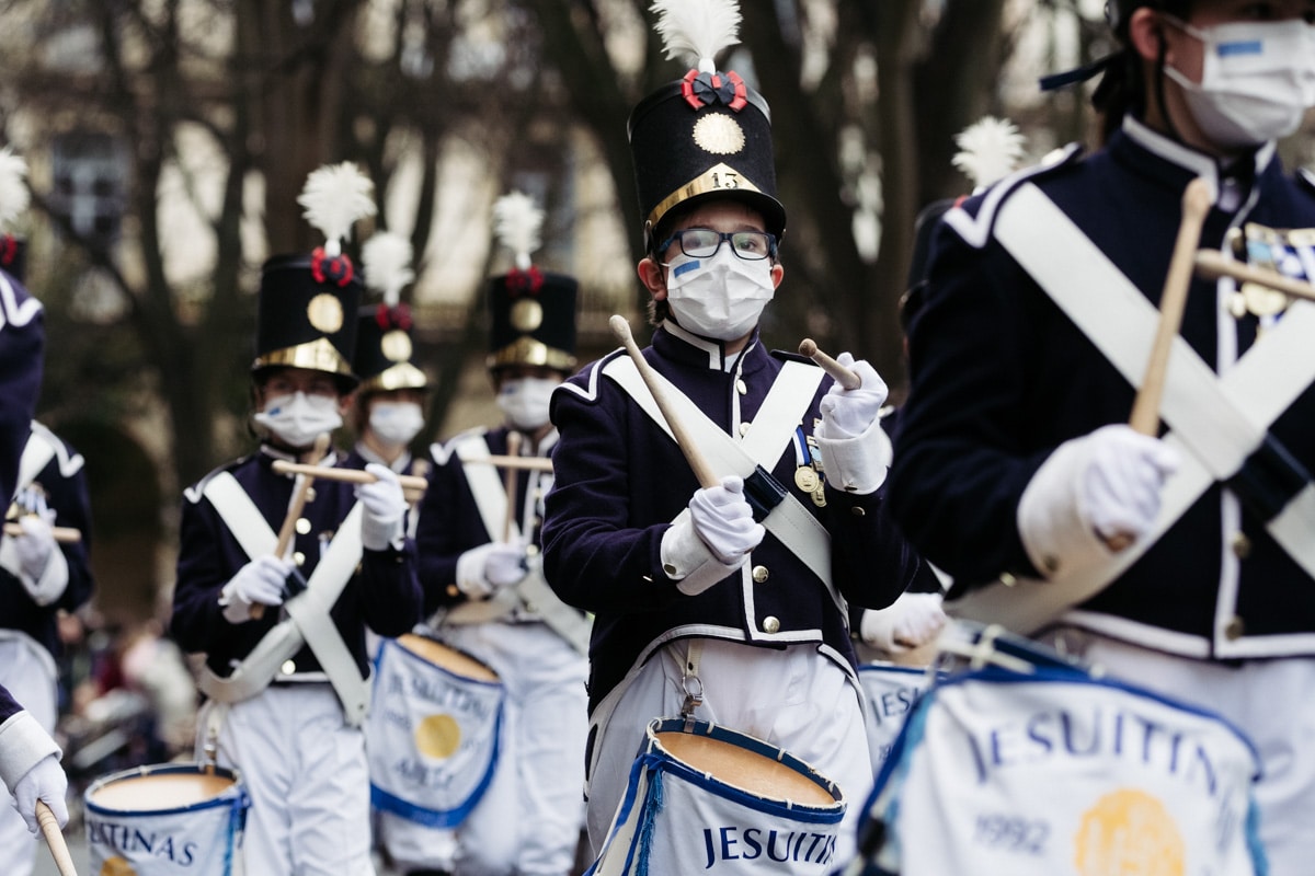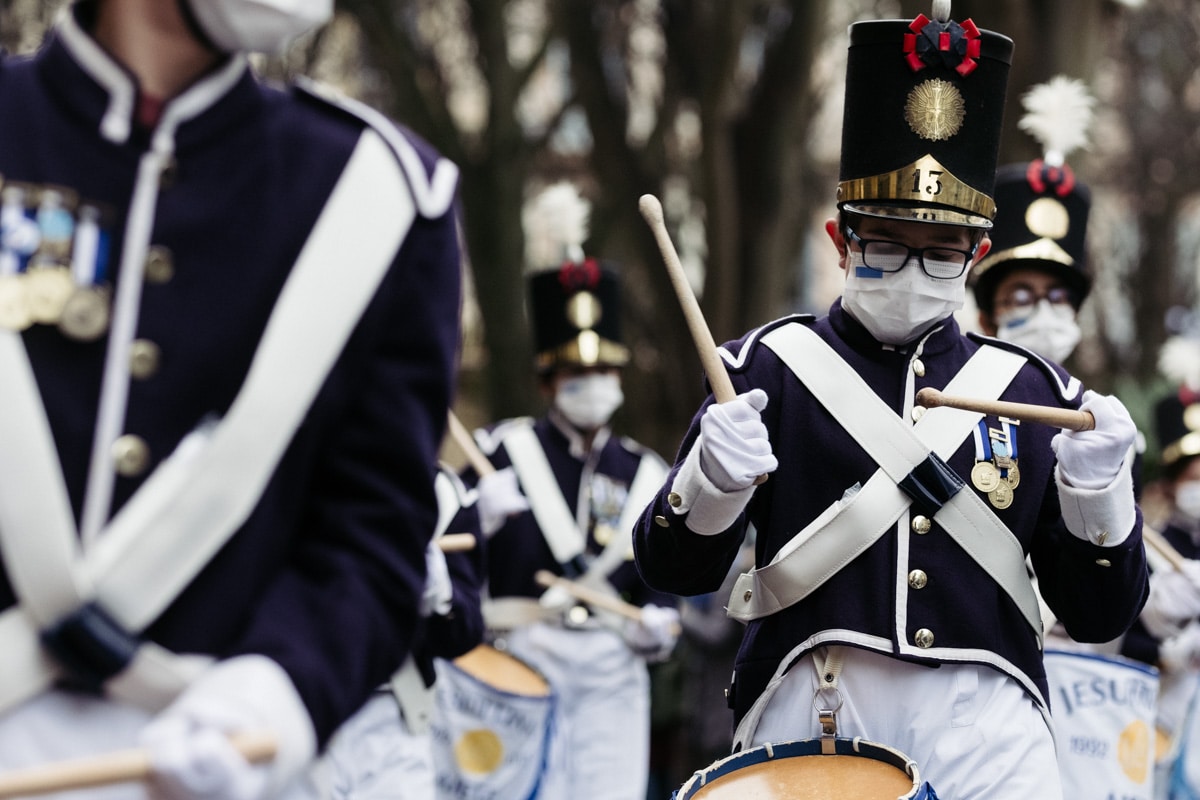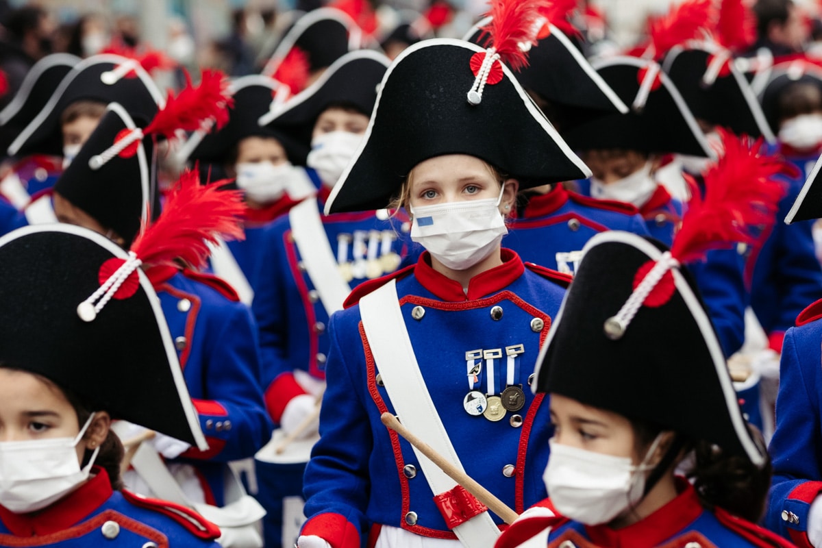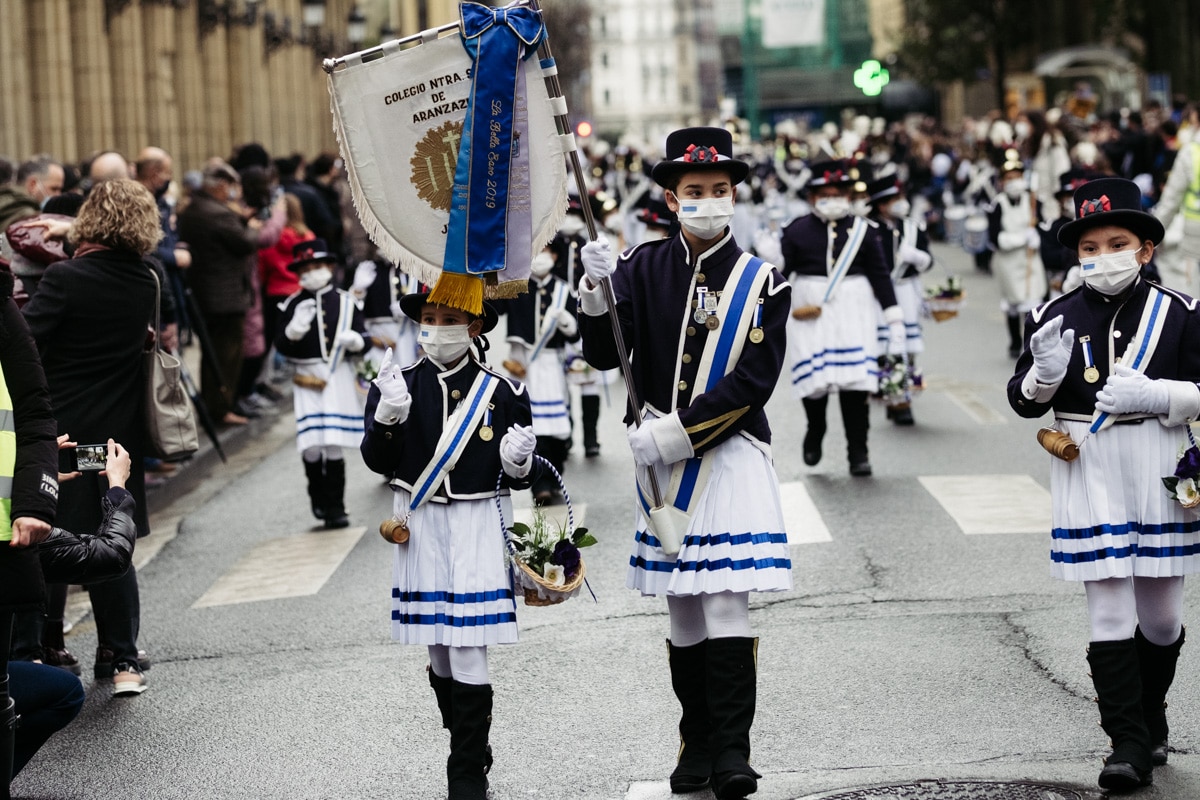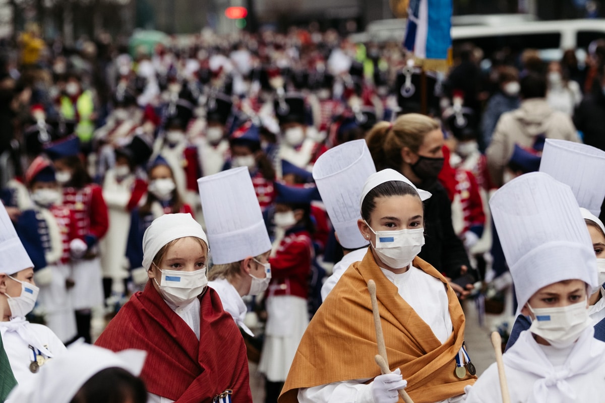 La Tamborrada infantil de este mediodía en Donostia, con las compañías separadas en cinco trayectos distintos, evitando aglomeraciones y con distancias, pasará a la historia como ‘la tamborrada del covid’.