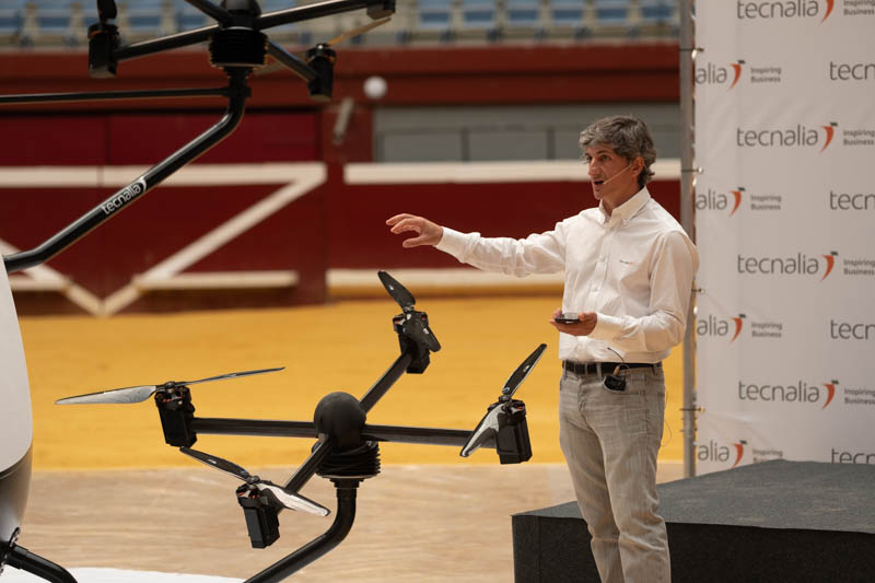 Joseba Lasa, uno de los responsables del desarrollo, ha explicado que “la principal novedad de la aeronave de Tecnalia reside en que por su arquitectura permite que la cabina pueda mantener su propia orientación independientemente de la velocidad, una ventaja clara frente a los drones convencionales y las actuales aplicaciones tipo air taxi. Esta característica mejora la experiencia de vuelo, permitiendo una sensación similar a la de un automóvil o un autobús, desde el punto de vista dinámico”.