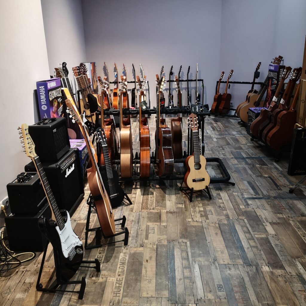 El interior del nuevo Erviti es elegante y espacioso. Una serie de pianos y teclados de todo tipo dan la bienvenida al visitante. Después de atravesar un estrecho pasillo con instrumentos de viento a los lados, el local se estira hasta que un sinfín de guitarras aparecen desplegadas en el suelo. “No hemos tenido que hacer obra”, explica Garate. “Lo hemos pintado, hemos puesto luz, hay mobiliario nuevo y algunos retoques más. La orientación es la misma que la anterior, da al sur. Estamos encantados”, dice con una sonrisa que se adivina tras la mascarilla.