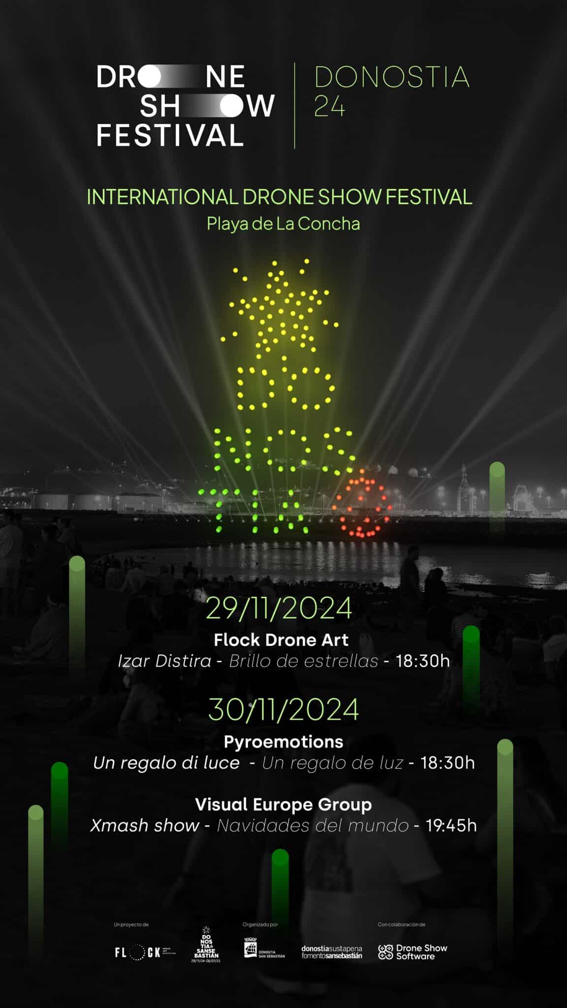Este viernes y este sábado podrá disfrutarse en Donostia el Drone Show Festival, evento internacional que reúne a los mejores artistas de espectáculos con drones. Será con motivo del encendido de luces navideñas.