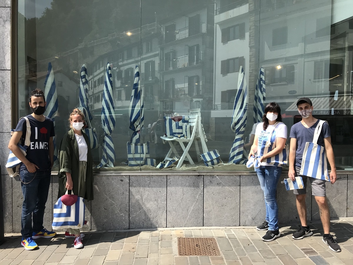 Los productos de TELA MARINERA, la colección de ‘Sinderperdicio’, adornan el escaparate del Aquarium donostiarra y se pueden adquirir en la tienda. ‘Sindesperdicio’ es la marca de bolsos, artículos de oficina y otros objetos de Emaús Fundación Social con el apoyo del Ayuntamiento donostiarra, que entrega a la entidad las lonas publicitarias una vez agotada su vida útil. La actual colección de TELA MARINERA 21 es fruto del diseño de Jone Pujana.