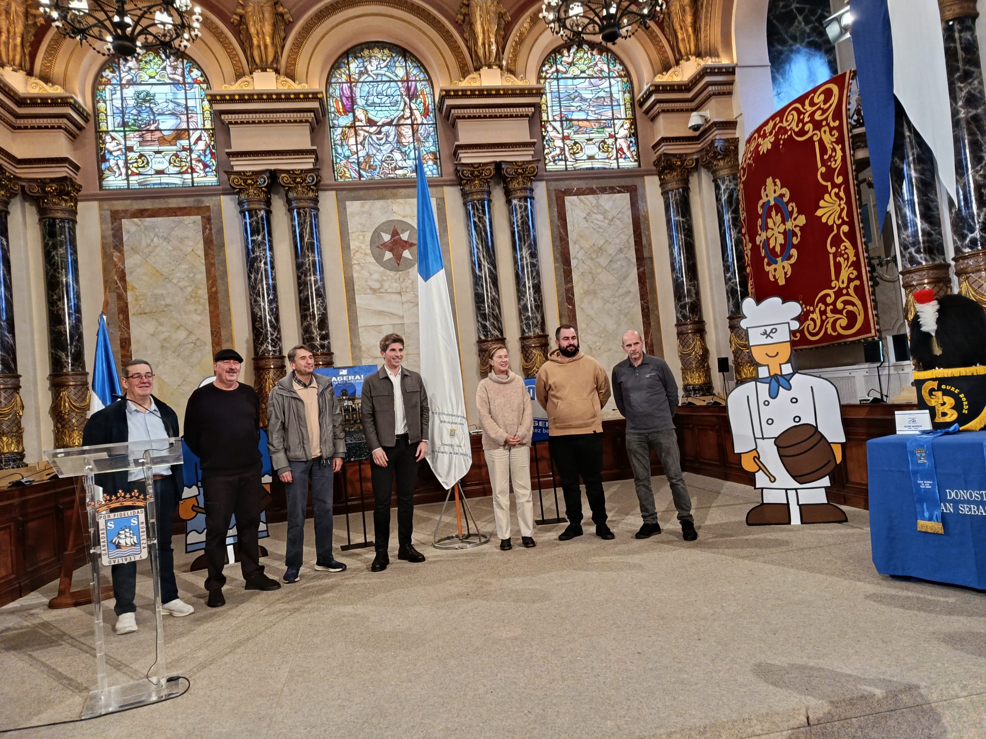 Esa transformación se refleja también en el cartel conmemorativo e este año, obra del artista donostiarra Roskow. Su ilustración une la plaza de 1926 con la de 2026: la multitud, la medianoche, la Marcha de Sarriegui y la bandera elevándose como protagonista absoluta. Pero introduce un cambio clave: una mujer en el centro de la escena, simbolizando una ciudad que ha hecho de la igualdad parte de su identidad festiva. Así lo ha contado él mismo esta mañana en el Ayuntamiento.