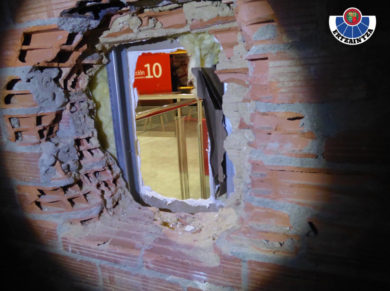 Llegada la mañana del 24 de marzo, a las 07:07 horas, los primeros empleados accedieron al interior de la sucursal y pudieron observar el butrón y el brazo de una persona que empuñaba un arma corta, una pistola. Al verse sorprendidos, los ladrones desistieron de sus intenciones y huyeron del lugar sin lograr su cometido. Inmediatamente la Ertzaintza recibió el aviso en su Centro de Mando y Control de la tentativa de atraco en la citada sucursal.