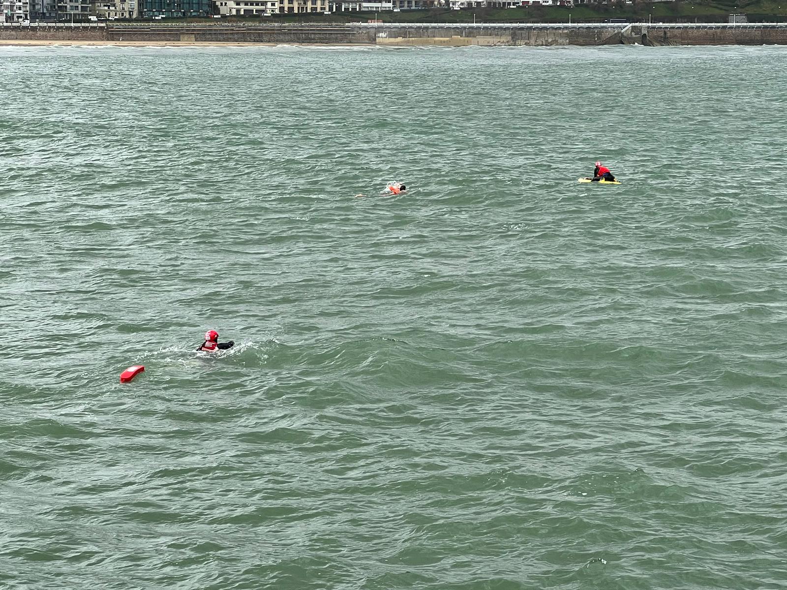 La temperatura del mar hoy ronda los 14º y hay aviso amarillo por riesgo marítimo costero. Se desconoce el estado de las tres personas que han tenido que ser atendidas.