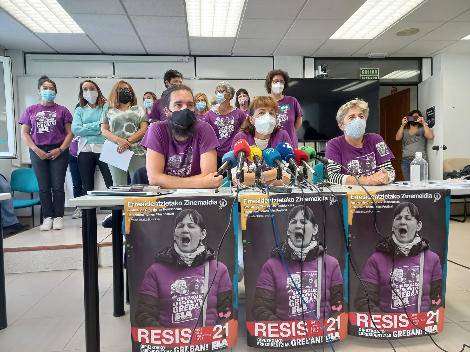 Las trabajadoras de las residencias de Gipuzkoa han dado hoy una rueda de prensa en el sindicato ELA en Donostia para ilustrar con sus testimonios que la situación que ayer se hizo pública respecto a Txara I «no es un hecho aislado». Las trabajadoras, dando nombres y apellidos, se han referido a situaciones que según aseguran son normales en los centros San Juan de Zumaia, en Alai Etxe, en Villa Sacramento o en Txara I por poner unos ejemplos.