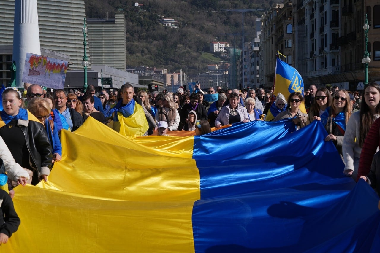 (EFE). Cientos de personas han participado este domingo en las tres capitales vascas en sendas manifestaciones para rechazar «una paz impuesta que solo perpetúa la agresión» de Rusia a Ucrania. Las marchas han sido organizadas por la Asociación Ucrania Euskadi con motivo de la víspera del tercer aniversario de la invasión «a gran escala» de Rusia a Ucrania.