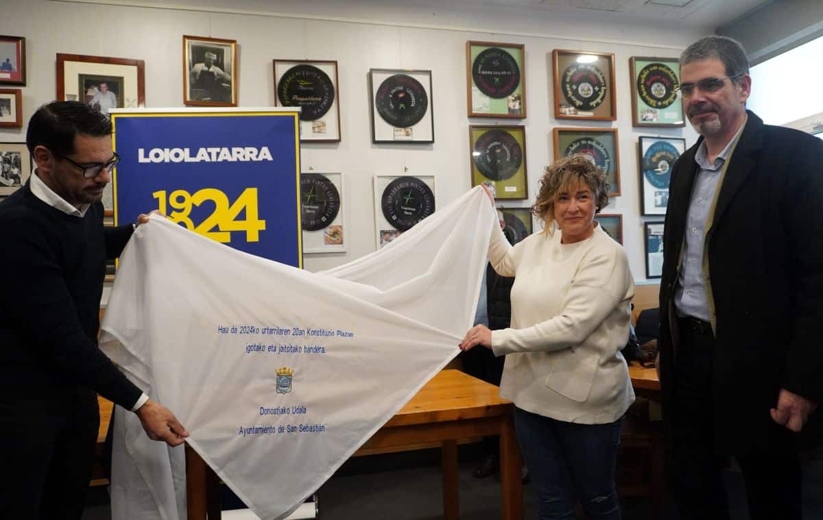 Loiolatarra KE elkarteak 100 urte beteko ditu 2024an, eta Udalak erabaki du urteurren hori ospatzeko urtarrilaren 20ko 00:00etan Konstituzio plazan igo eta egun horretako 24:00ak arte hagan egon zen bandera ematea. Emandako entseina honako testu honekin brodatu da: «Hau da 2024ko urtarrilaren 20an Konstituzio plazan igotako eta jaitsitako bandera».