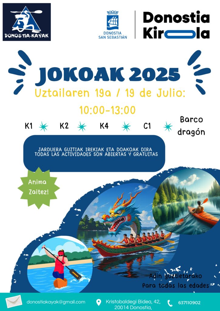 La jornada del sábado, en lo que a Donostia Kayak se refiere, tendrá lugar en Kristobaldegi Bidea, 42, en la base del club, con acceso libre y sin necesidad de inscripción previa. Todas las actividades serán gratuitas. Para más información o para concertar futuras visitas grupales con asociaciones, el club pone a disposición su contacto directo: 637 110 902 // [email protected]