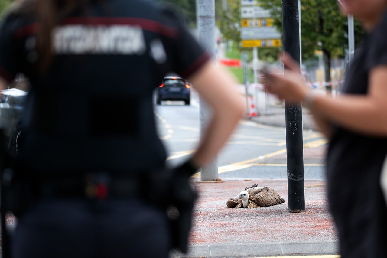 Pero finalmente ha sido la Guardia municipal la que ha tomado cartas en el asunto y a las 13.10 un agente pertrechado con guantes se ha llevado al buitre metido en un coche en dirección a las dependencias del cuerpo.