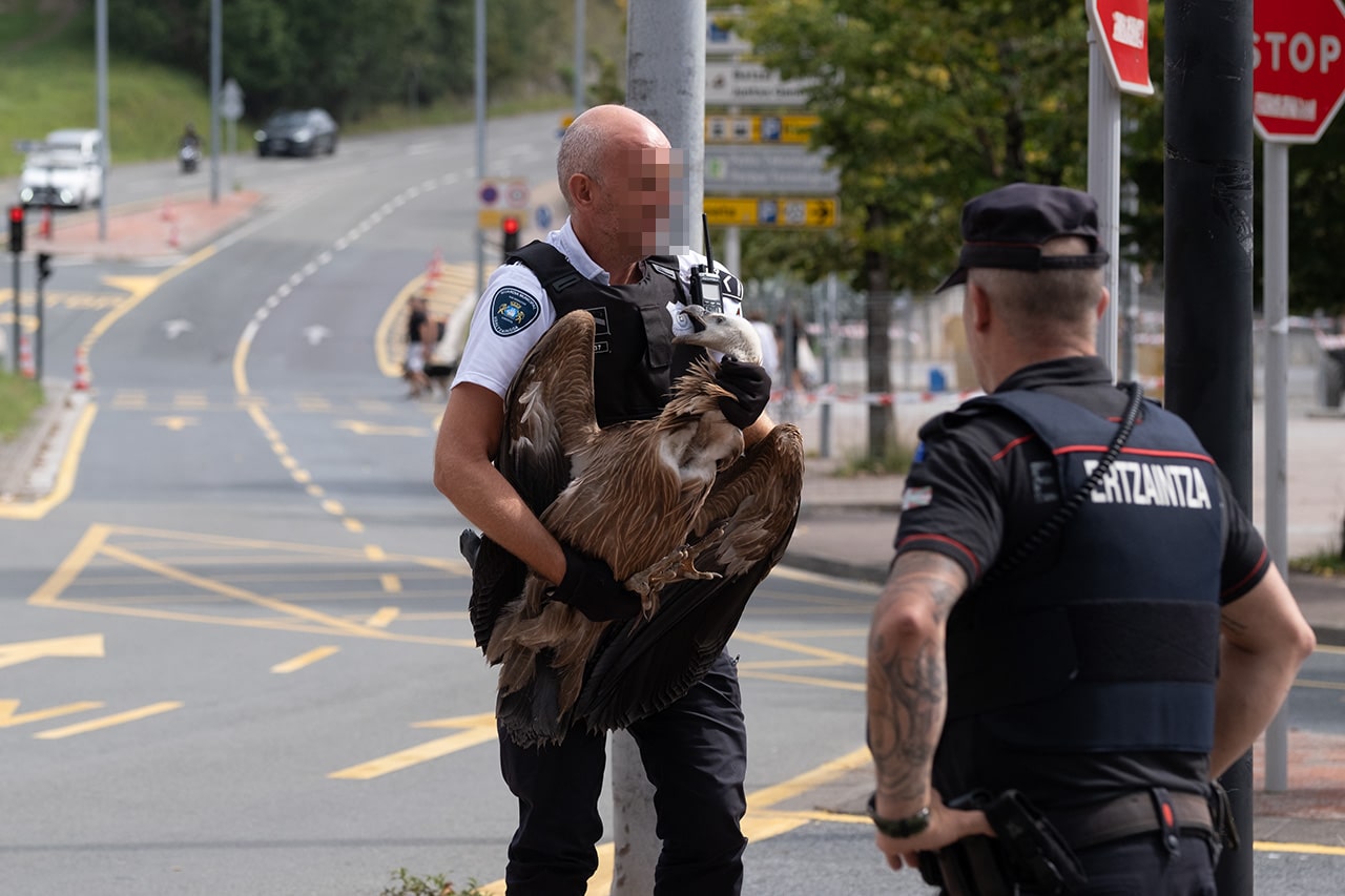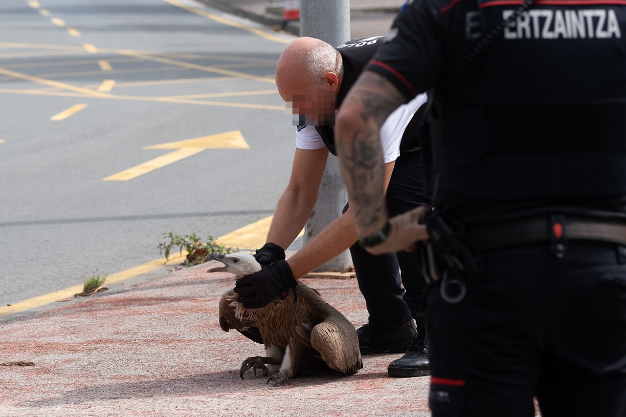 Una patrulla de la Ertaintza ha sido la primera en acudir al conocer la situación y ha mantenido a los presentes a la distancia, mientras cabe intuir que comenzaban los primeros trámites para informar a Basabizi, el centro para la recuperación de la fauna silvestre de la Diputación que está ubicado en Urnieta.