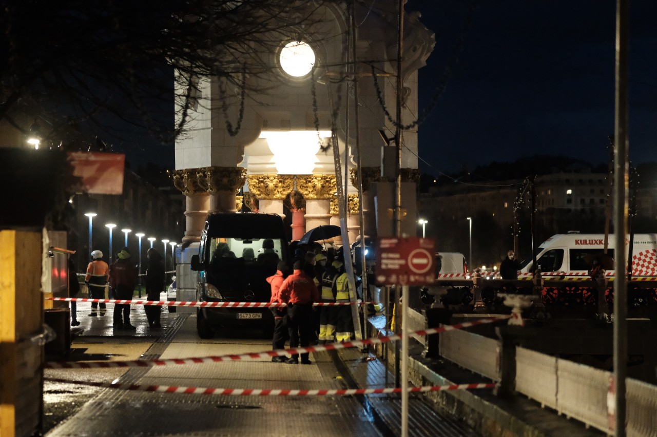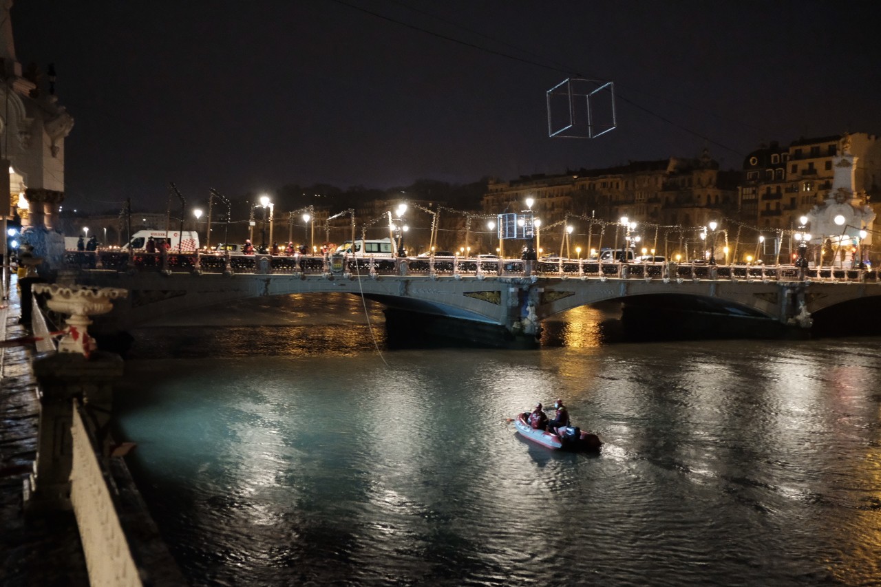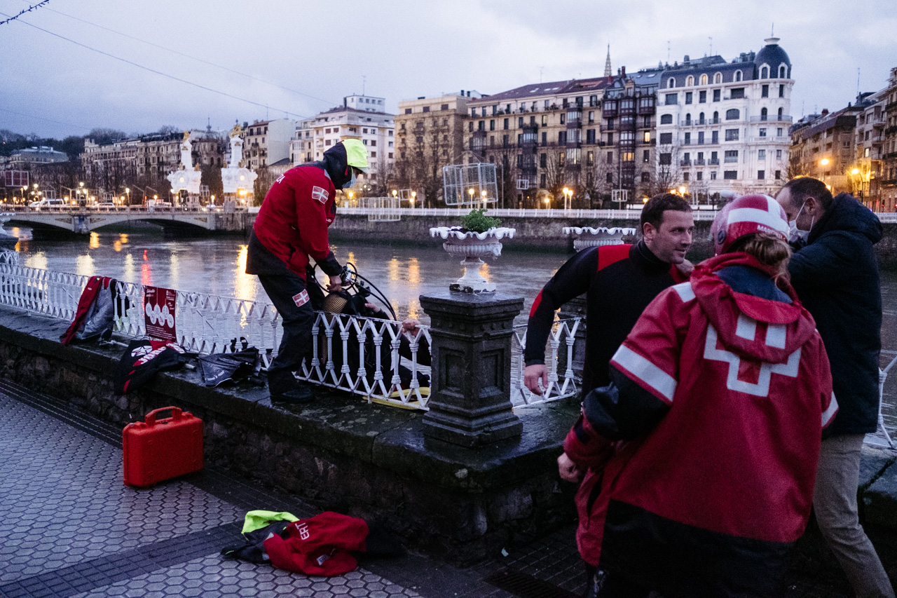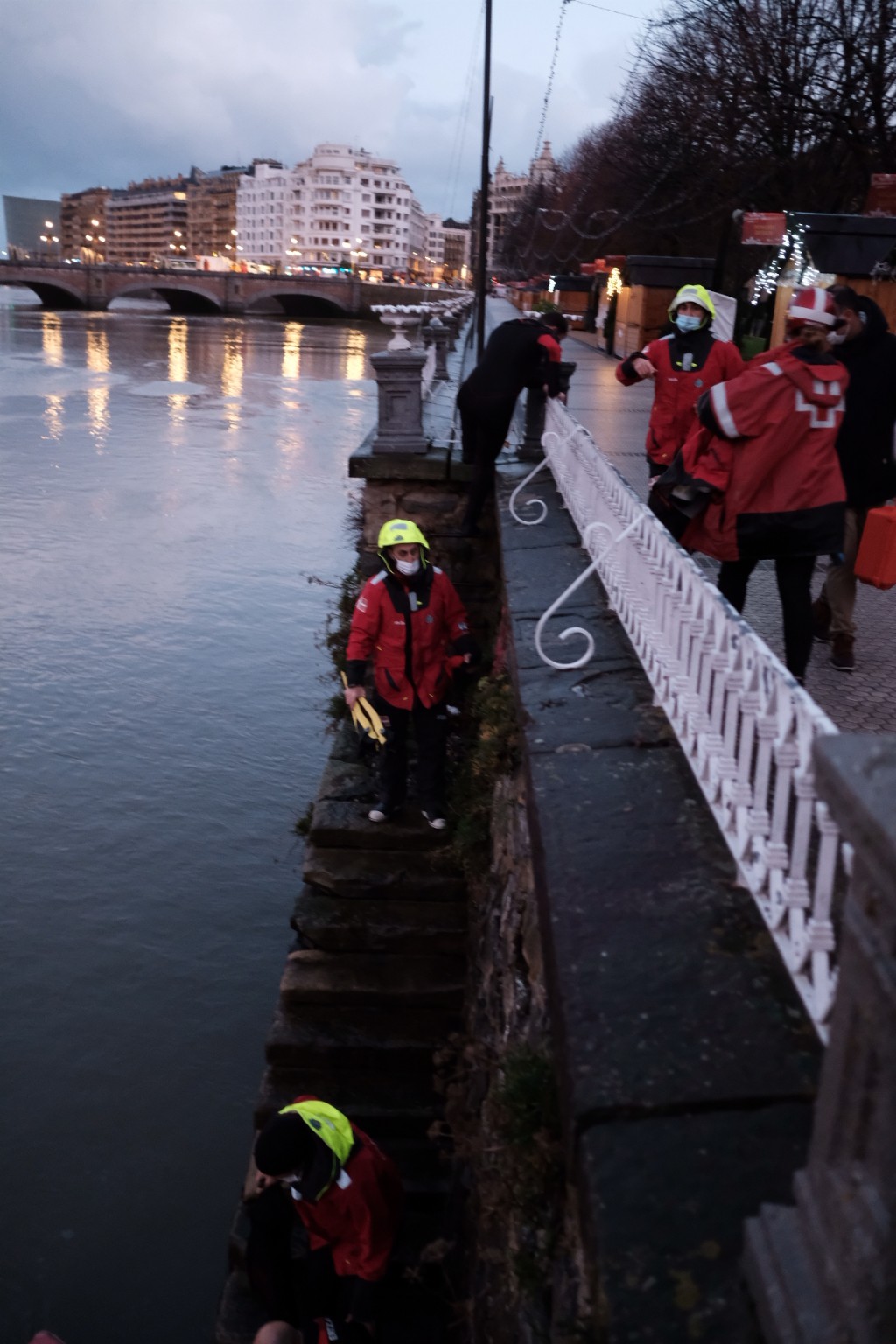 Continúa la Ertzaintza trabajando con ahínco junto al puente María Cristina para rescatar al agente que ha caído al río Urumea en su coche patrulla a las 3.28 horas, según ha concretado el Departamento de Seguridad. El compañero ha podido salir del vehículo y a continuación ha sido rescatado por los servicios de emergencias para ser trasladado al Hospital Donostia.