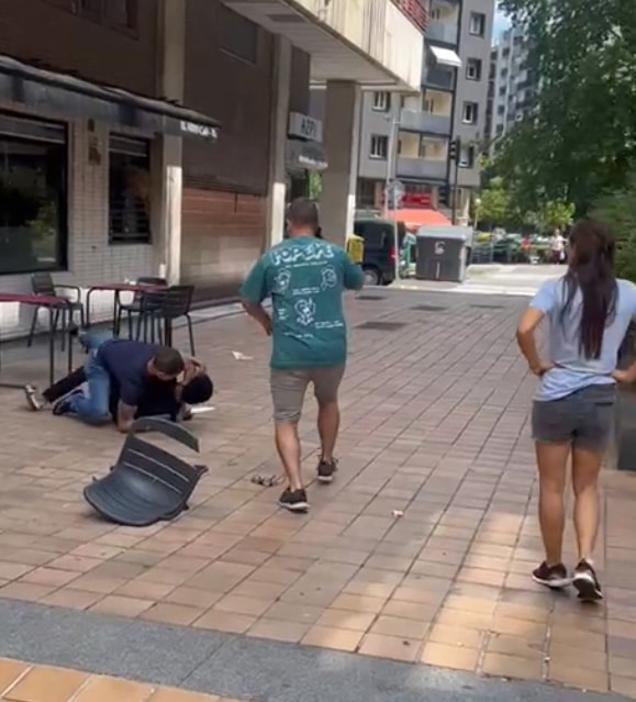 Fuentes de la Consejería de Seguridad han explicado a DonostiTik que ambos hombres estaban peleándose de forma muy violenta (han llegado a usar una silla de la terraza del bar en cuya puerta ha tenido lugar la reyerta) hasta que uno ha sacado un cuchillo (en el vídeo que ha hecho un viandante se observa que se trataba de un cuchillo de dimensiones importantes), y ambos han terminado enzarzados en el suelo.