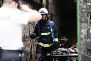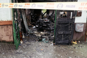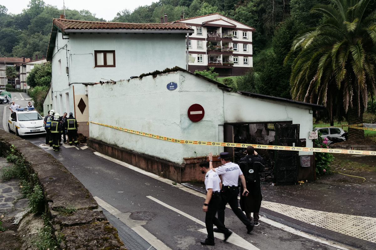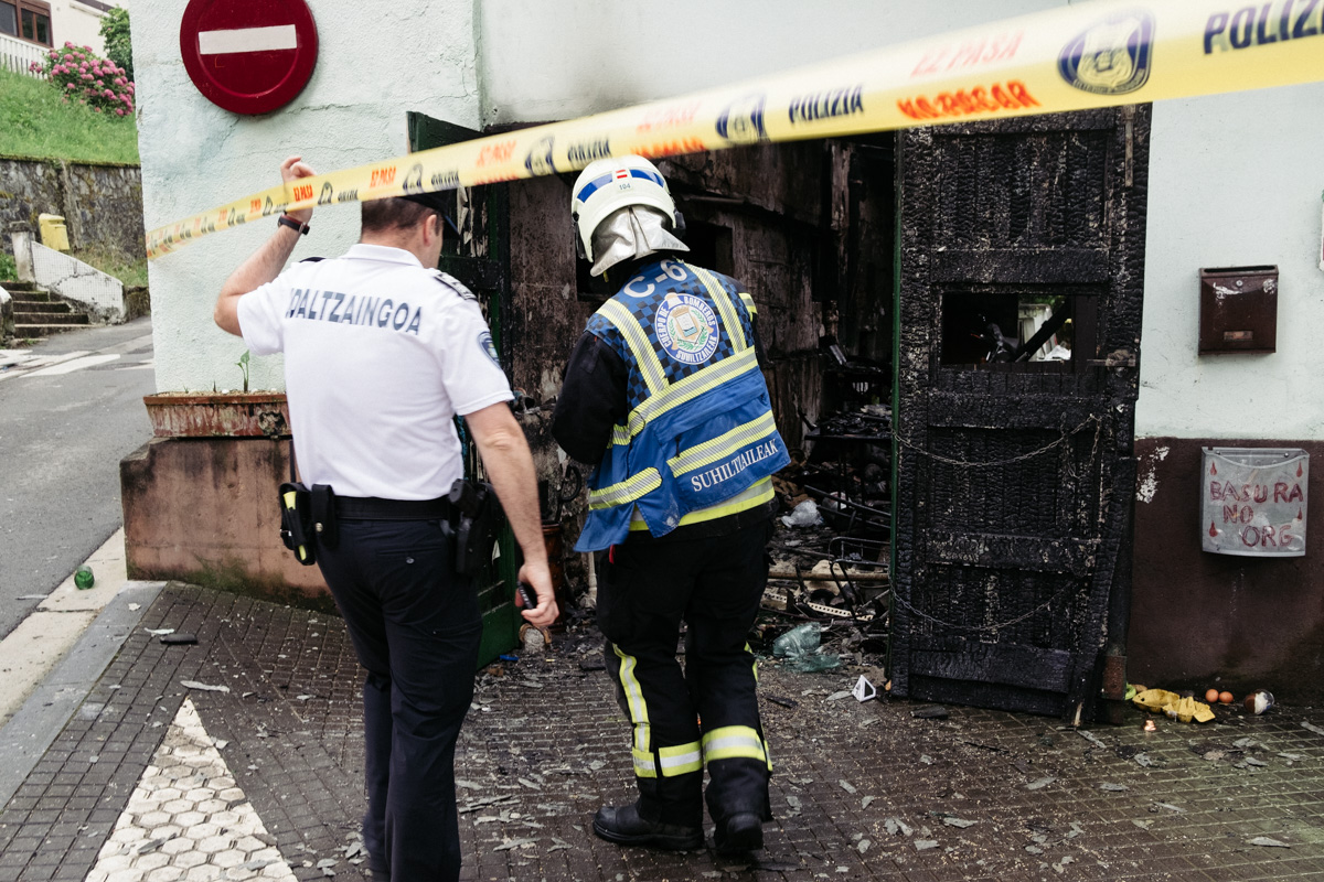 Sobre las 7 horas los vecinos han avisado de que había humo y al acudir Ertzaintza, Guardia municipal y bomberos se han encontrado con el autor del incendio que los ha recibido lanzándoles objetos.