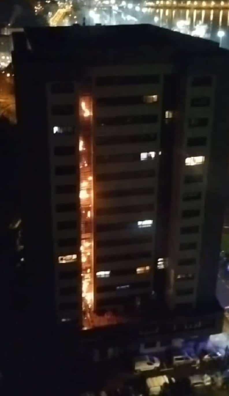 Varios vídeos difundidos a través de WhatsApp permiten ver a los bomberos actuando en la zona desde una escala, así como la progresión del fuego entre la mitad de la torre y las plantas más altas del edificio, a través del citado patio exterior.