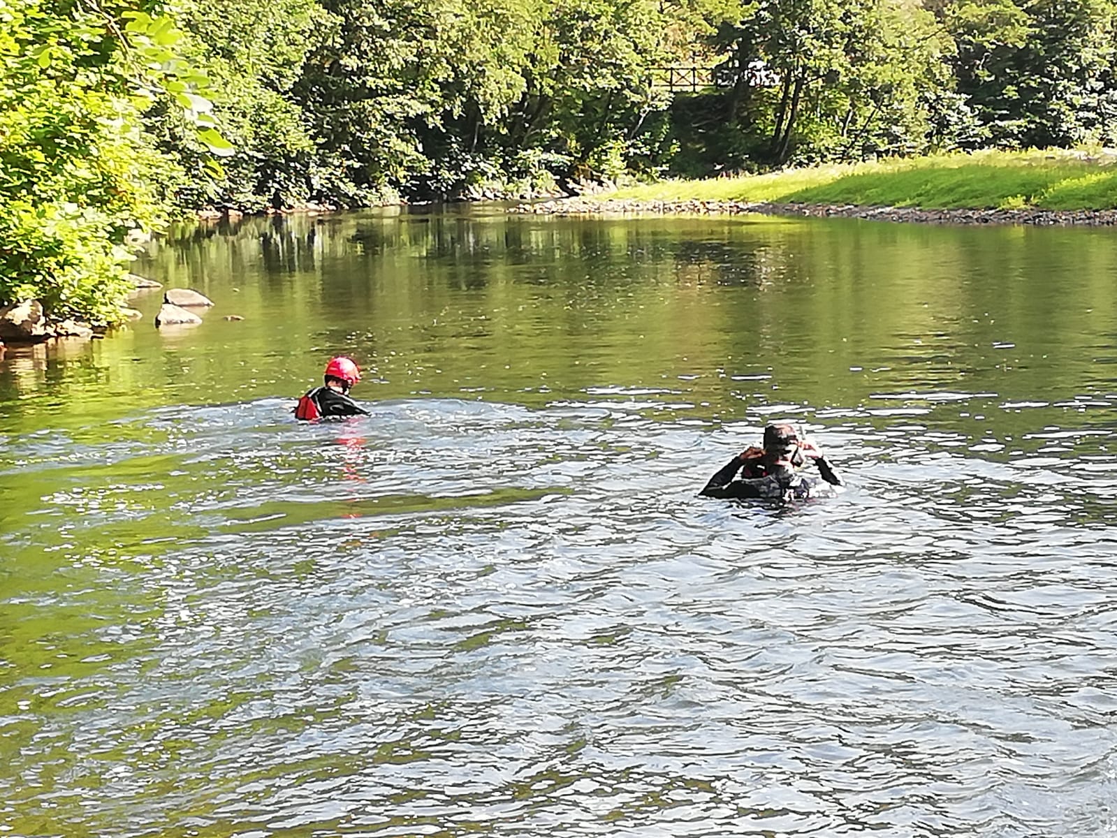 Una vez que SOS-Deiak/112 tenía conocimiento del suceso, ha puesto el asunto en manos de un técnico de Atención de Emergencias del Gobierno Vasco, quien de inmediato ha solicitado la presencia en el lugar de un helicóptero de la Ertzaintza con configuración de buceo, buzos de Cruz Roja de Hondarribia y de los Bomberos, así como una dotación de la Unidad de Vigilancia y Rescate de Montaña y patrullas de Seguridad Ciudadana de la Ertzaintza para recorrer la ribera del río.