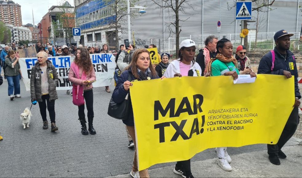 La veterana movilización, que han apoyado medio centenar de asociaciones, movimientos sociales y sindicatos vascos, se ha celebrado con el lema ‘Seguru? Por unos barrios seguros’, con el fin de denunciar los discursos racistas que criminalizan a colectivos por su origen y para pedir normativas efectivas y recursos públicos para combatirlo.