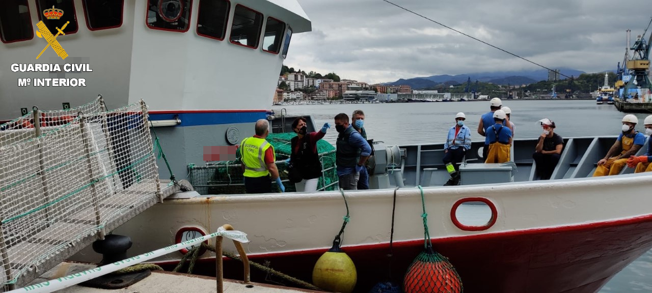 El Servicio Marítimo de la Guardia Civil de Gipuzkoa recibió el pasado día 24 un aviso procedente de un buque pesquero con pabellón español comunicando la recogida de restos humanos en la red de arrastre a 9, 5 millas de la costa.