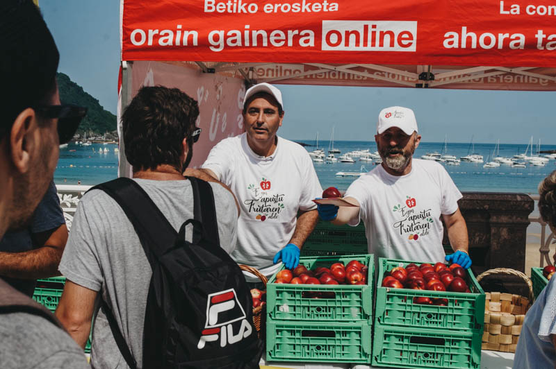 La campaña repartirá durante este mes cerca de 20.000 piezas de fruta fresca y de temporada, principalmente nectarinas y platerinas. Lo hará en seis playas de Gipuzkoa: Hondarribia, La Concha, Zurriola, Ondarreta, Zarautz y Deba.
