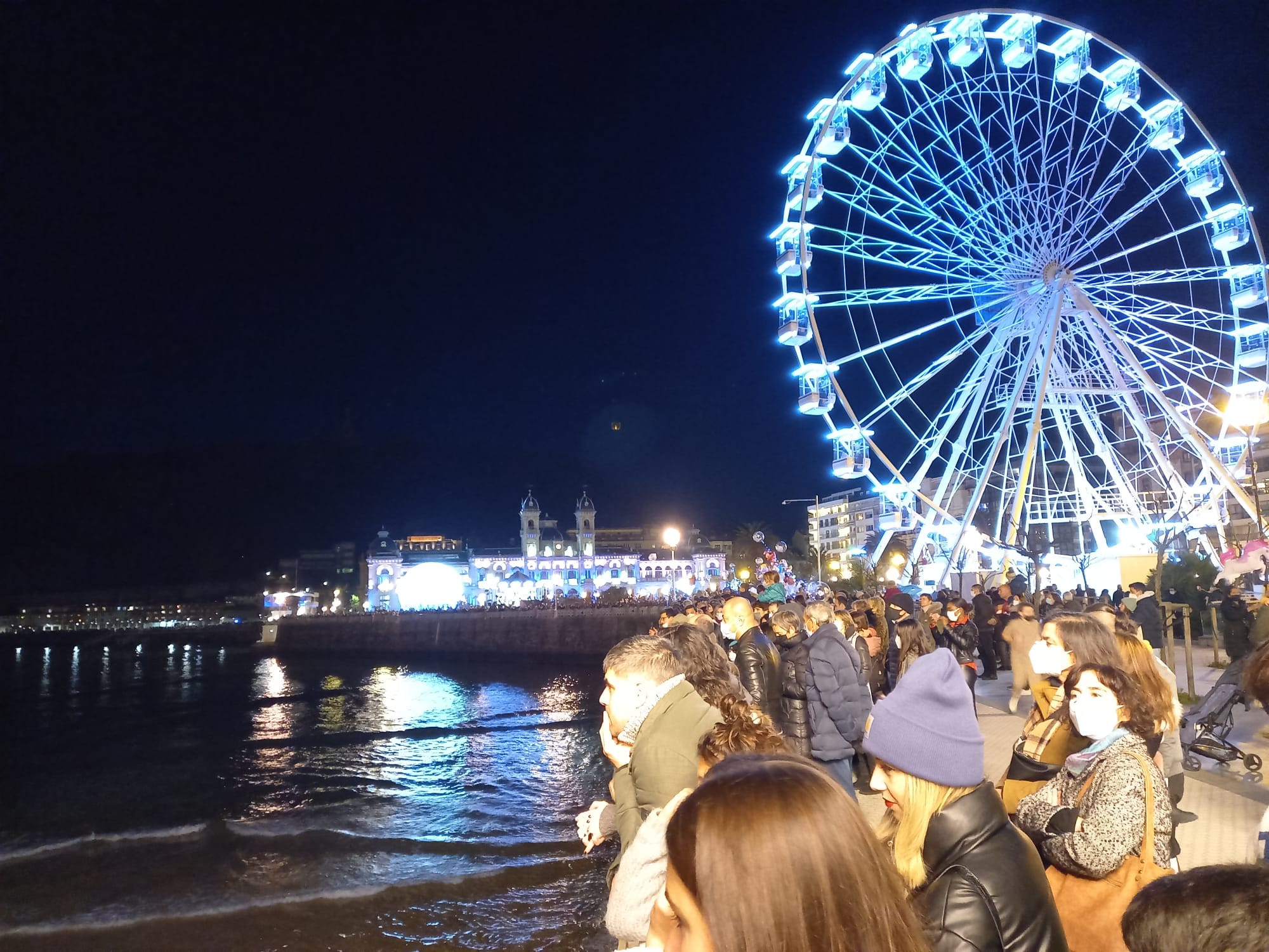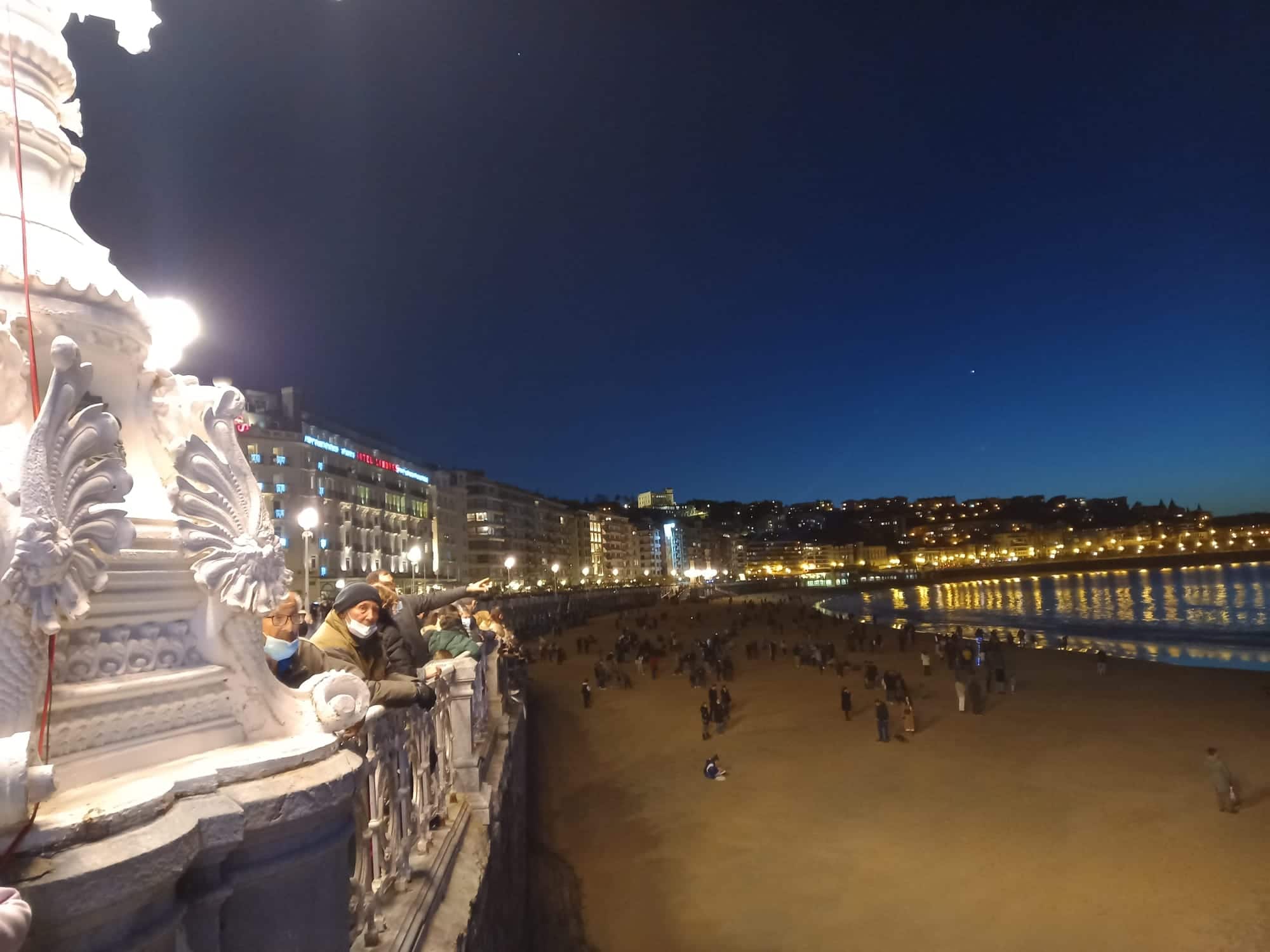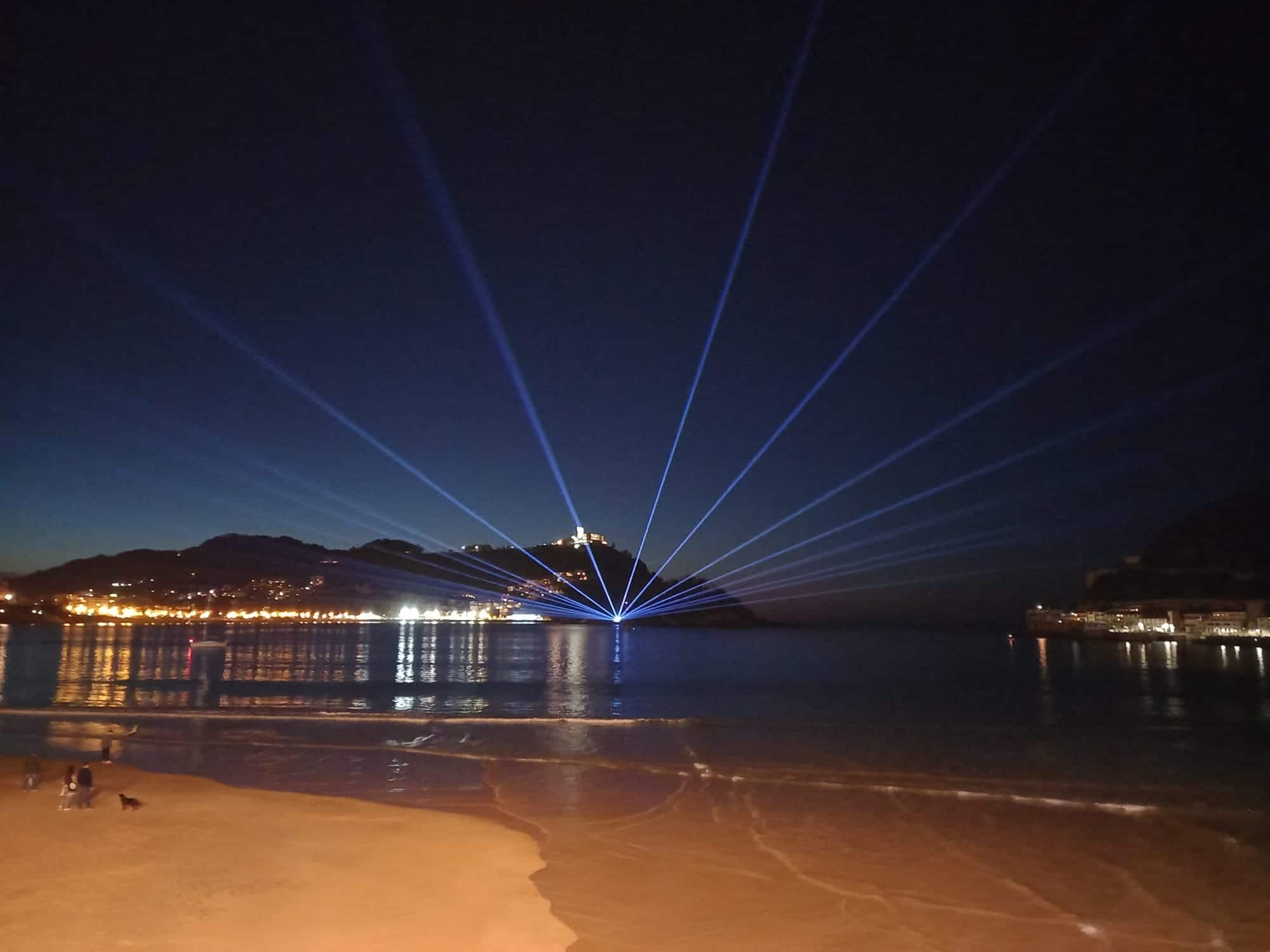 Había curiosidad por conocer el espectáculo de luz y sonido diseñado por Sebastián Arquitectos y como prueba quedaban muy pocos huecos en la barandilla de la Concha para las 18.30 horas, hora en que ha comenzado esta especie de charla musical y visual entre la isla y los relojes.