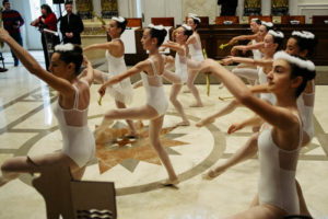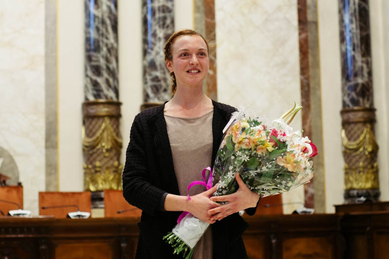 Un emocionada Irma Hoffren recibió ayer el XVI Premio de la Danza de Gipuzkoa en el Ayuntamiento ante la mirada de amigos, familia y vecinos que aplaudieron con ganas la entrega y la actuación de las niñas que hoy comienzan a emular el arte de la bailarina donostiarra del Mallandain Ballet Biarritz y que lo hacen, como ella, desde la Escuela de Danza Thalia de su ciudad natal.
