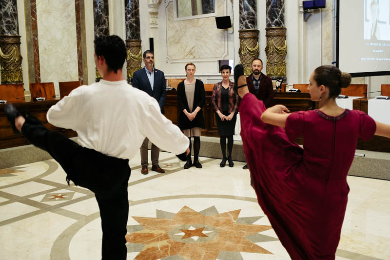 La entrega del galardón, en que difícilmente pudo contener las lágrimas, contó con la presencia del alcalde Eneko Goia, el diputado Denis Itxaso y responsables de la Asociación de Profesionales de la Danza de Gipuzkoa, que organizan el Mes de la Danza, la entrega del premio y la gala que hoy concluye la cita.
