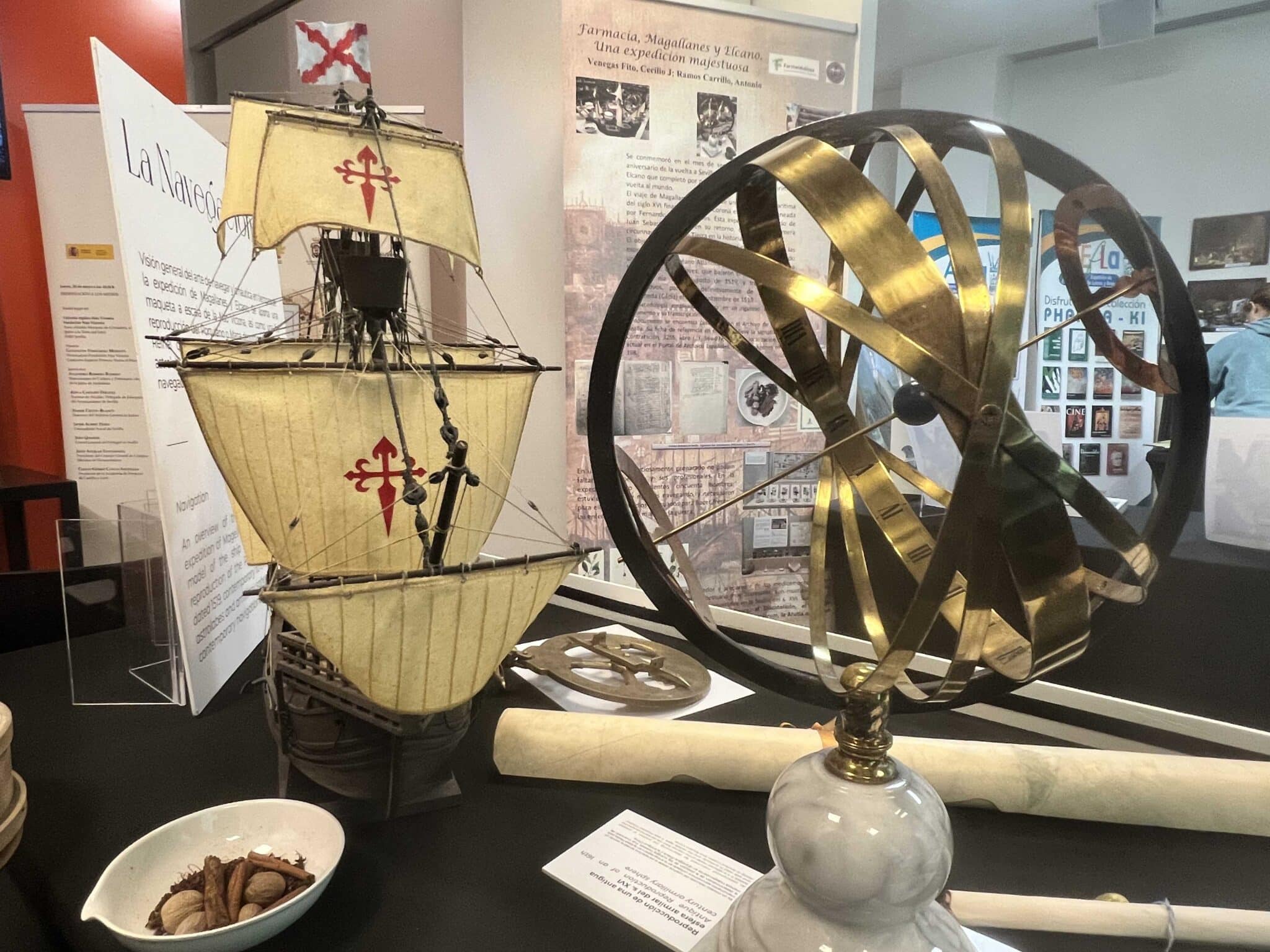 Alberga, entre otros materiales: mapas facsímiles, una reproducción de la Nao Victoria, réplicas de albarelos, cajas de preparación de medicamentos, astrolabio, vasijas, especias, etc. Se trata de piezas escogidas para tener una idea fehaciente de cómo era la navegación de la época y de qué medicamentos, útiles y especias se utilizaban, «que era realmente por lo qué se movió la expedición, ya que las especias eran tan valiosas como el oro y gustaban por dar un gusto exótico a la comida y bebida».