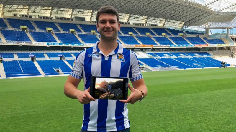 La última edición del concurso #TxuriUrdinakMundutik #Realistasporelmundo ya tiene imagen ganadora. Gracias a su foto tomada durante un colorido atardecer en Río de Janeiro portando la camiseta txuri-urdin y publicada en el Fan Wall, el donostiarra Christian Rincón viajará a las Islas Canarias de la mano de Halcón Bidaiak, agencia oficial de viajes de la Real Sociedad y marca colaboradora de Realzale Programa.