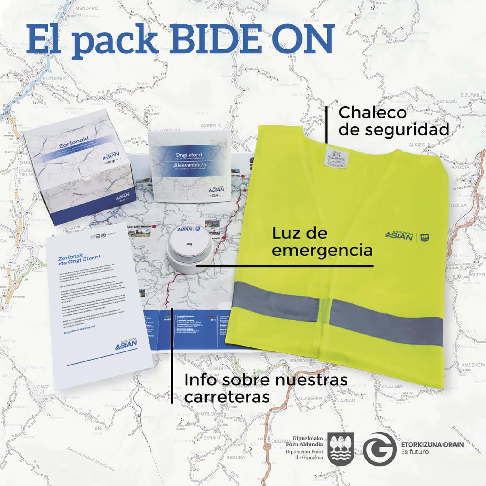 El departamento de Infraestructuras Viarias de la Diputación Foral de Gipuzkoa quiere dar la bienvenida a los gipuzkoanos que reciban su primer carnet de conducir con el pack Bide On. Así, quienes hayan obtenido el permiso en 2023 o lo vayan a hacer en 2024 podrán recoger una caja-obsequio en el punto de Atención al Cliente de Bidegi en Aritzeta (Usurbil) hasta agotar existencias.
