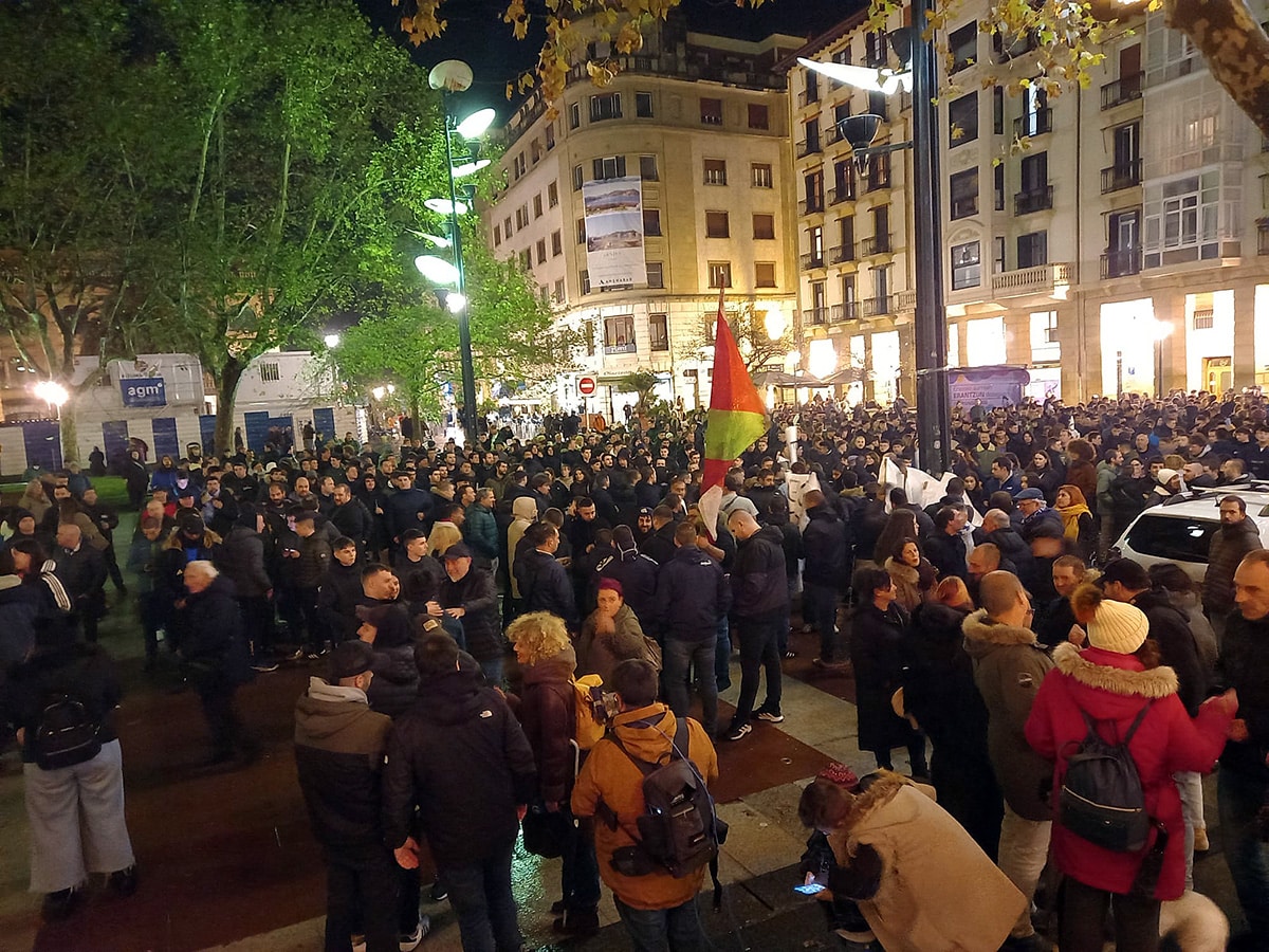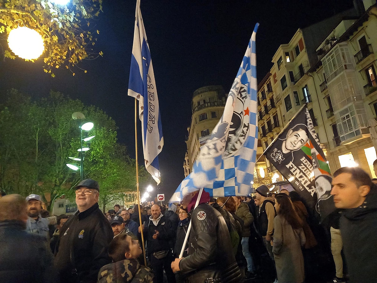 La peña Bultzada Txuriurdina ha convocado esta marcha que ha partido a las 19 horas desde el Boulevard donostiarra en homenaje a Zabaleta y «en contra del fascismo».