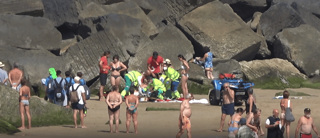 Una mujer ha sido rescatada esta mañana en la playa de la Zurriola tras ser encontrada boca abajo en la orilla y ha sido trasladada al Hospital Donostia.