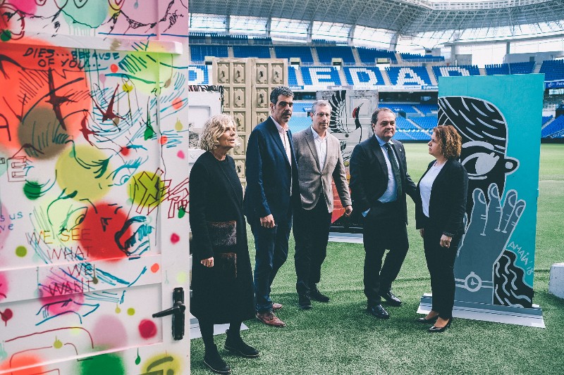 En la presentación, junto a la representante de Dimensión, han estado el alcalde Eneko Goia, el diputado general Markel Olano, el presidente de la Real Sociedad Jokin Aperribay y Edurne Ormazabal, directora de Tabakalera. Como reflejo de la unión en Euskadi frente a la lacra de la violencia machista.