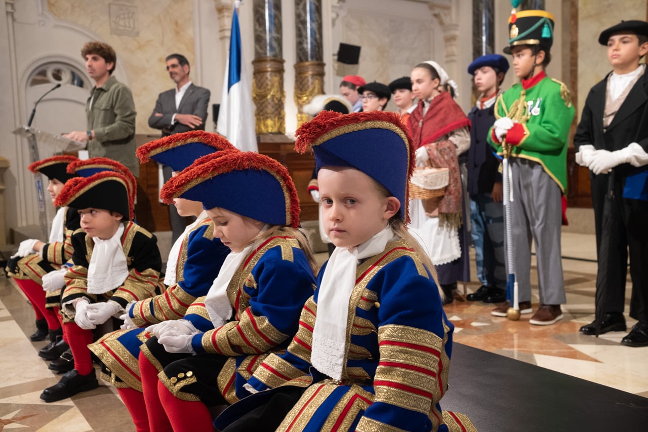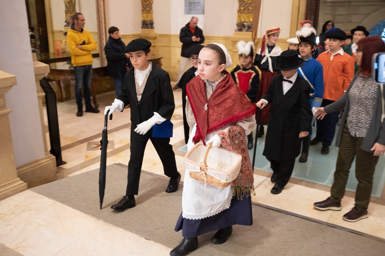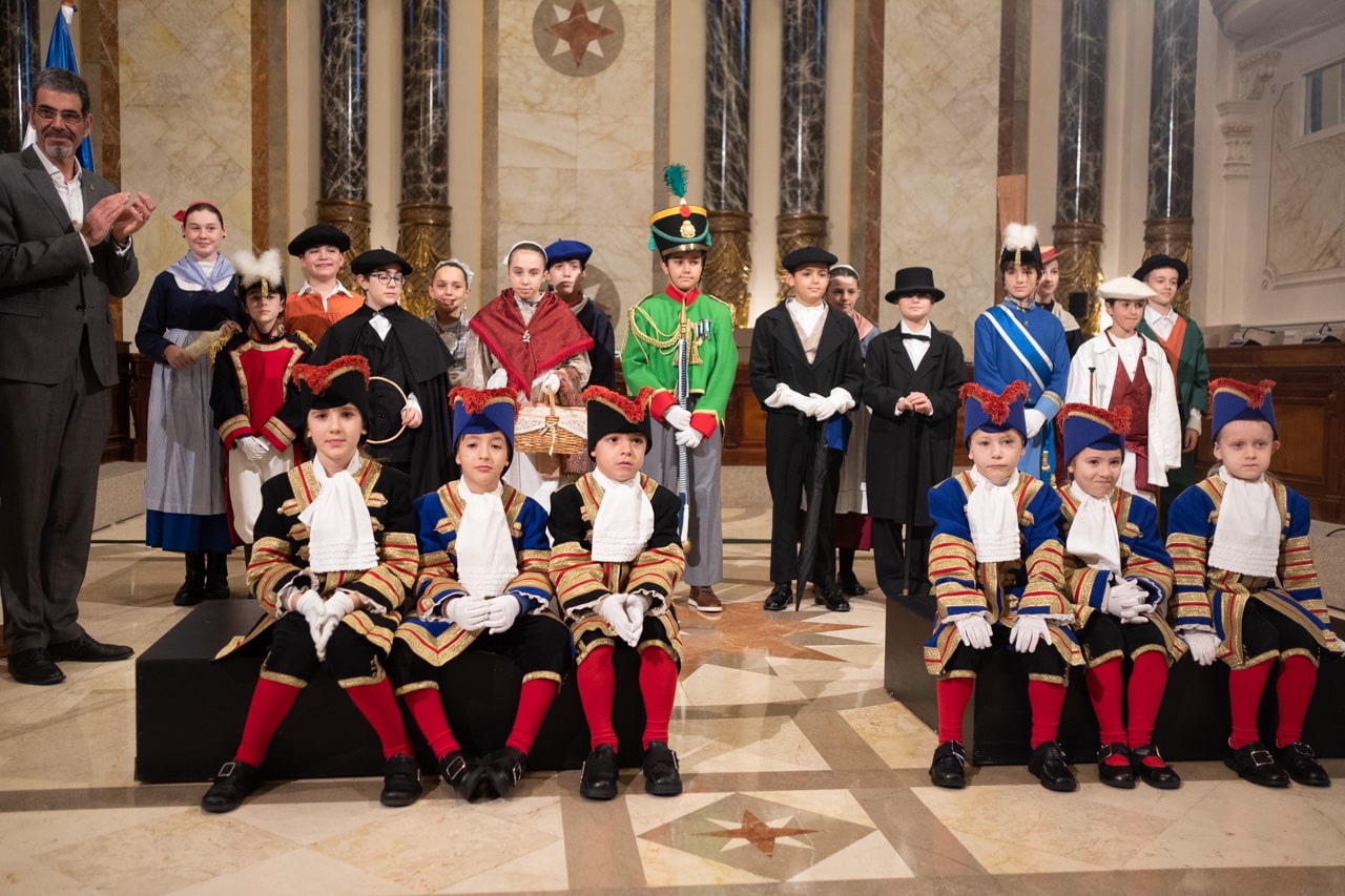 El alcalde de Donostia Eneko Goia, el concejal de Cultura Jon Insausti y personajes de la Tamborrada Infantil han presentado hoy una Tamborrada Infantil que, después de dos años de pandemia, regresa con toda la ilusión y llena de fuerza.