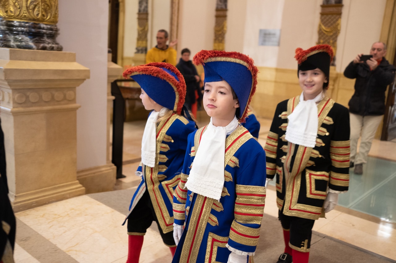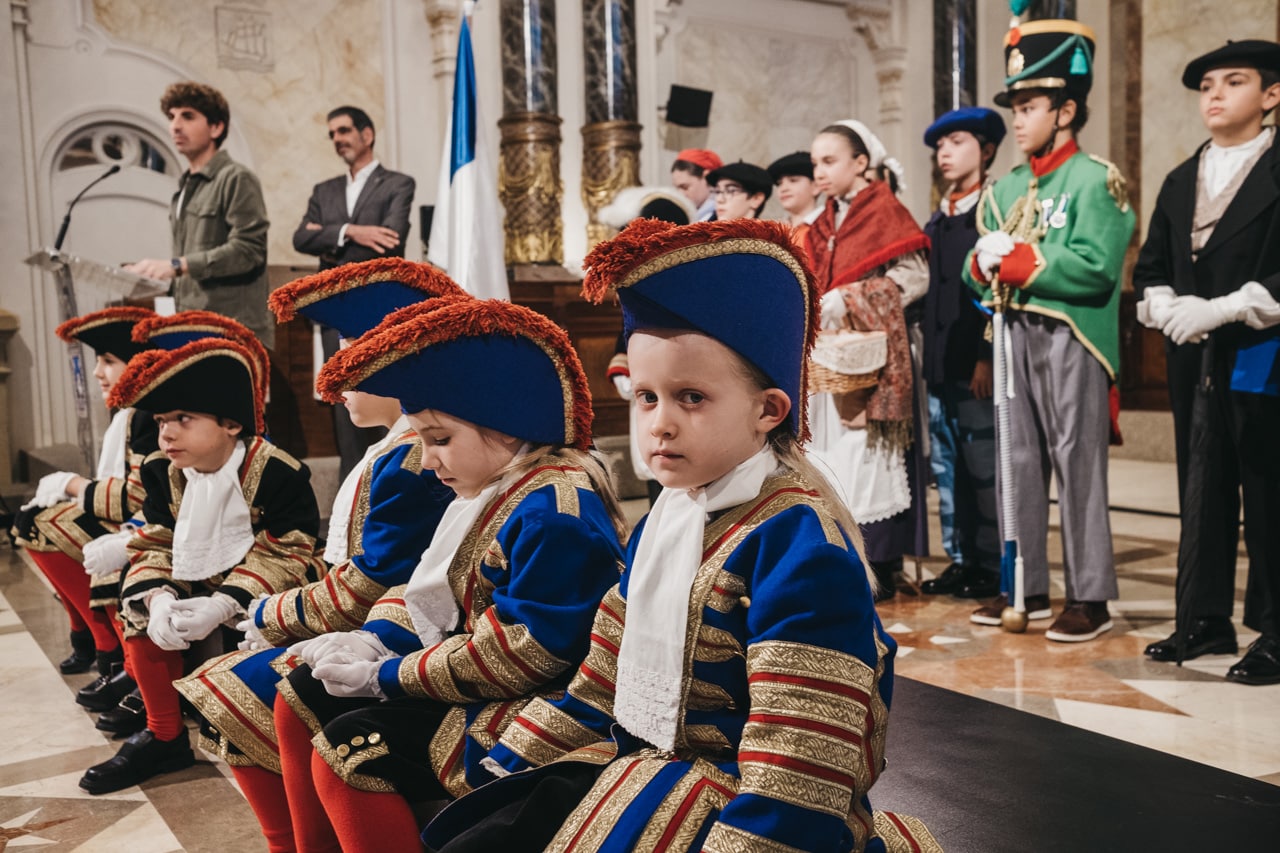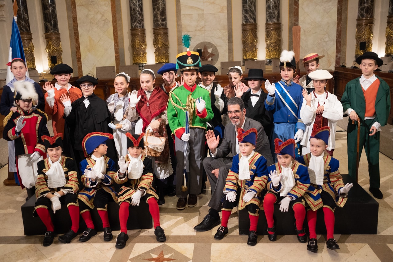 El alcalde de Donostia Eneko Goia, el concejal de Cultura Jon Insausti y personajes de la Tamborrada Infantil han presentado hoy una Tamborrada Infantil que, después de dos años de pandemia, regresa con toda la ilusión y llena de fuerza.