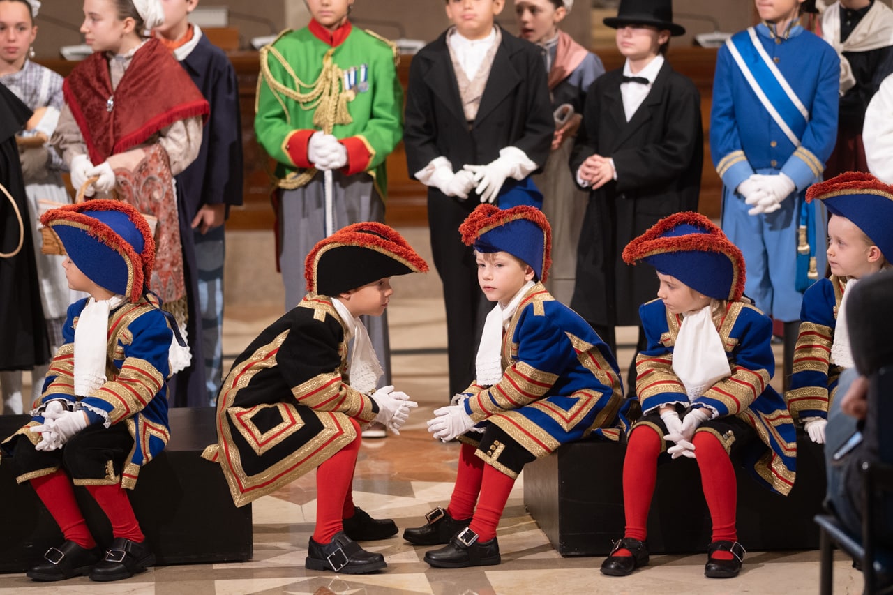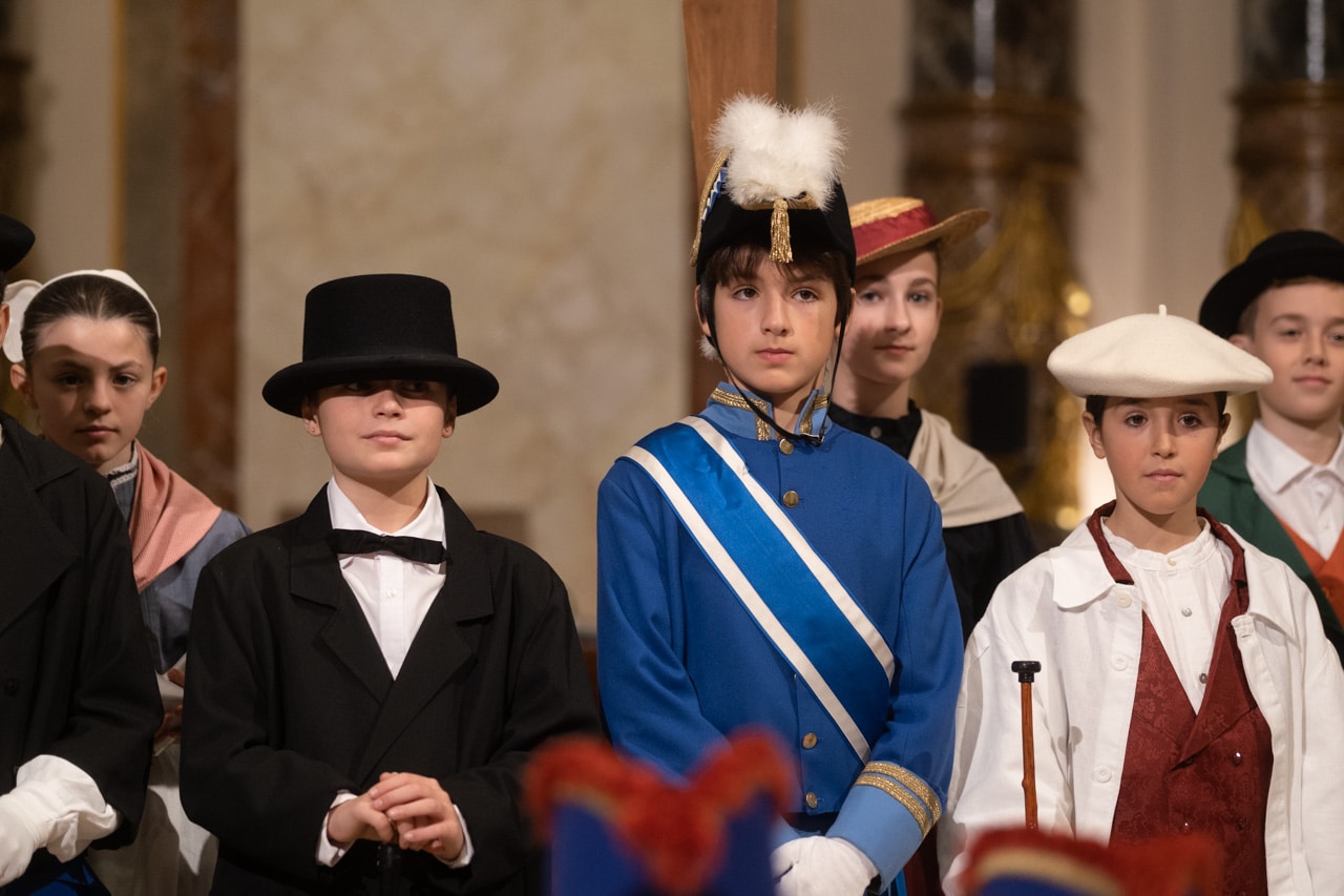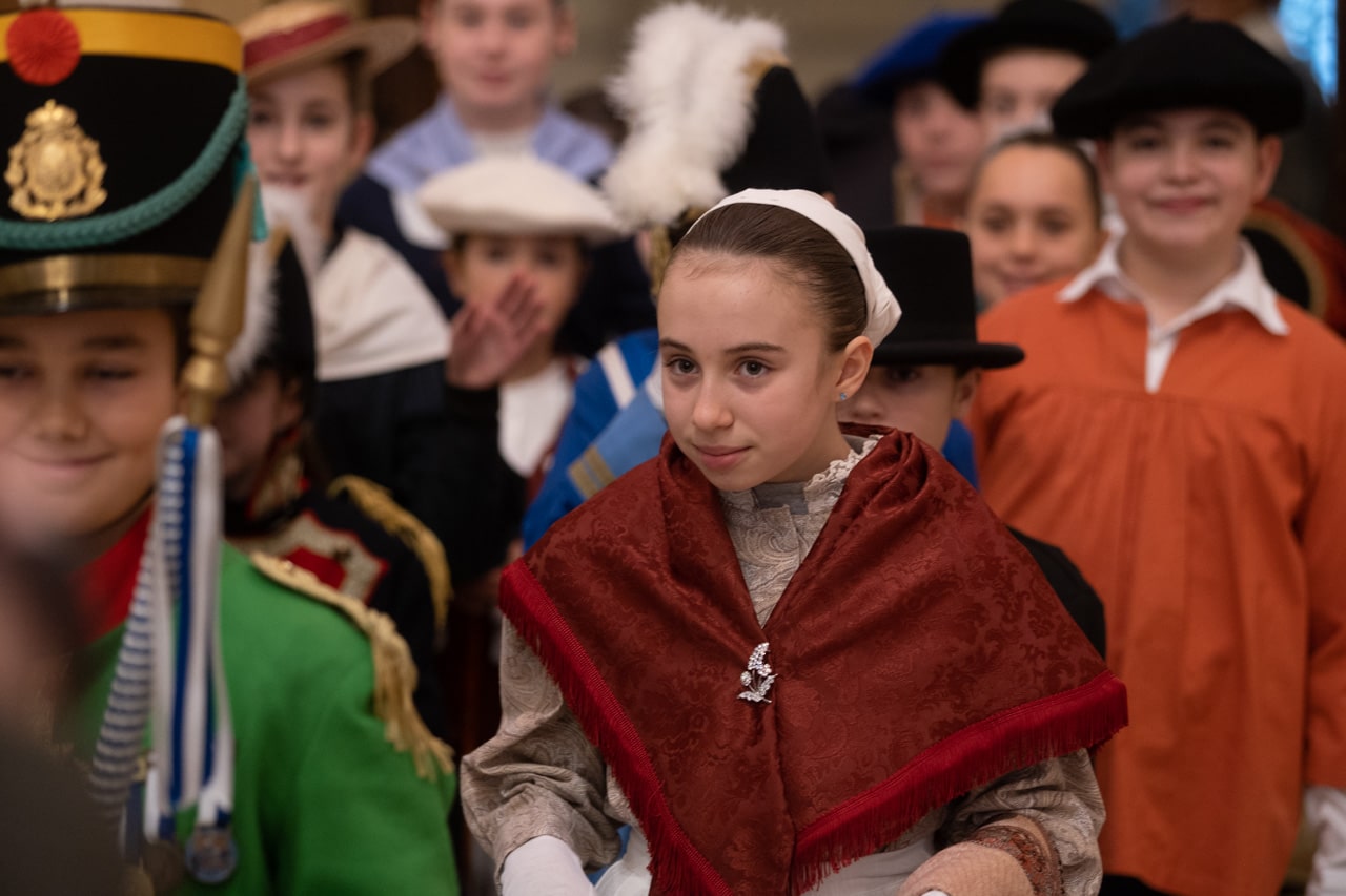 Una gran carroza, con personajes representativos de la sociedad civil de principios del siglo XIX, acompañará a la Tamborrada Infantil en su recorrido. Quienes encarnan dichos papeles pertenecen a Zurriola Ikastola y, entre otros, representan al alcalde, la notaria, la batelera, el pescador, la nodriza, el pastor, la hilandera, el comerciante, la aguadora y el arriero. A la carroza le precederá una calesa con seis palafreneros.