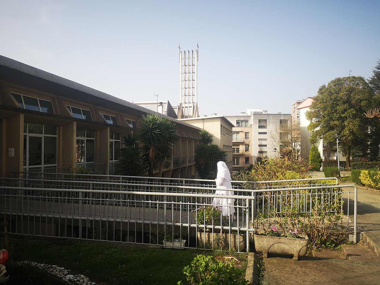 Delante del edificio principal, una extensa planta rebosante de luminosidad, la hermana María Luz atiende a un fontanero que sale de su furgoneta. Se dispone a cortar una “pequeña fuga de agua”, explica la religiosa en un agradable espacio ajardinado.