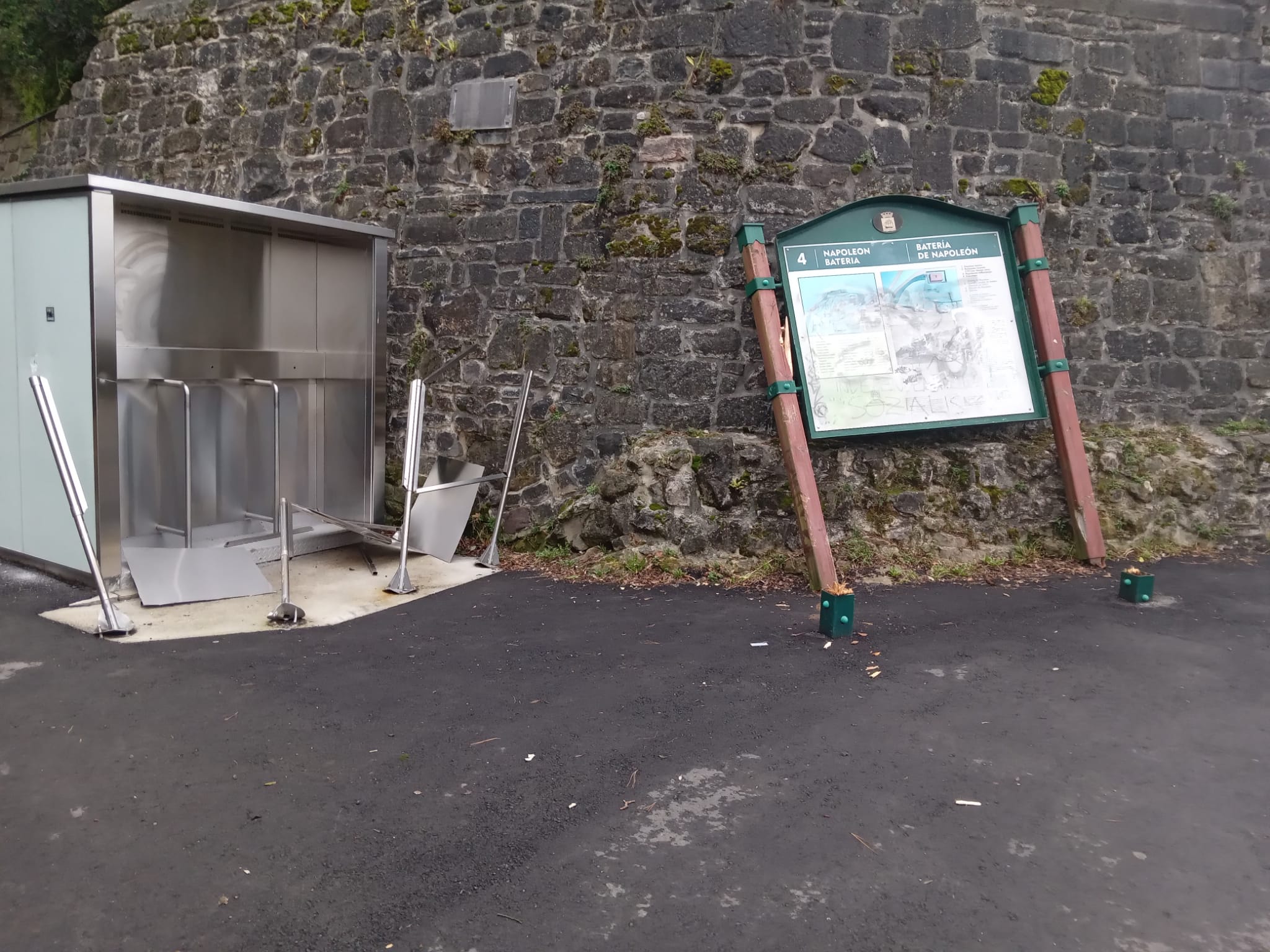 Garmendia ha explicado que “ya por la noche condujeron la máquina desde la citada explanada hasta el otro extremo arrasando con bancos, papeleras, señalética del parque, una marquesina, el nuevo váter autolimpiable (que ya ha sido destrozado en otras ocasiones) hasta llegar junto a la Batería de las Damas, donde han quemado la máquina junto a uno de los cañones históricos que, afortunadamente, no ha sido especialmente dañado”.