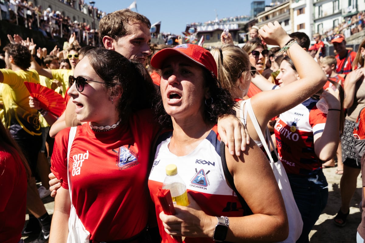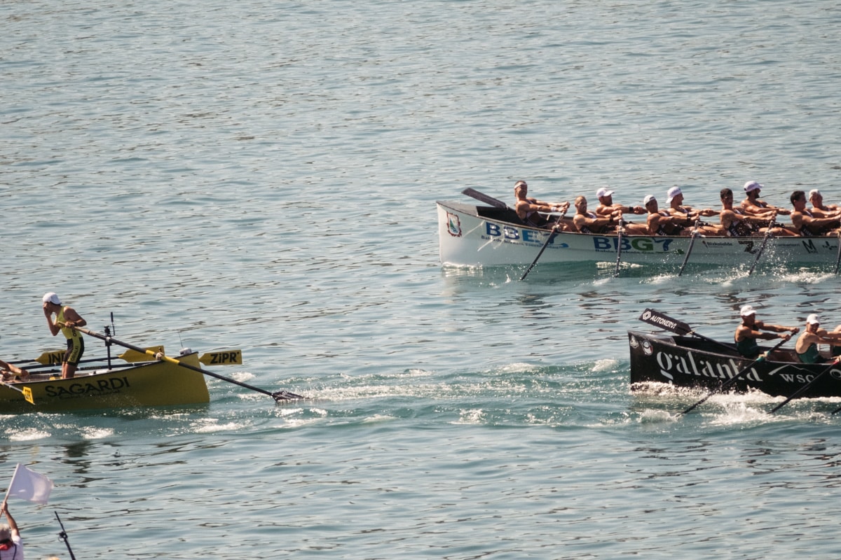 Orio, Zierbena y Kaiku llegaron casi a la par a la ciaboga, esta última se retrasó en la pelea con una mejorable salida de la boya y la tanda se convirtió en un duelo igualado entre las dos primeras que en el agua se llevó Orio, aunque una sanción confirmada en meta por no guardar las distancias en el campo de regateo le relegaría a la segunda posición por detrás de Santurtzi por un solo segundo. Bandera femenina con fotos, aquí.
