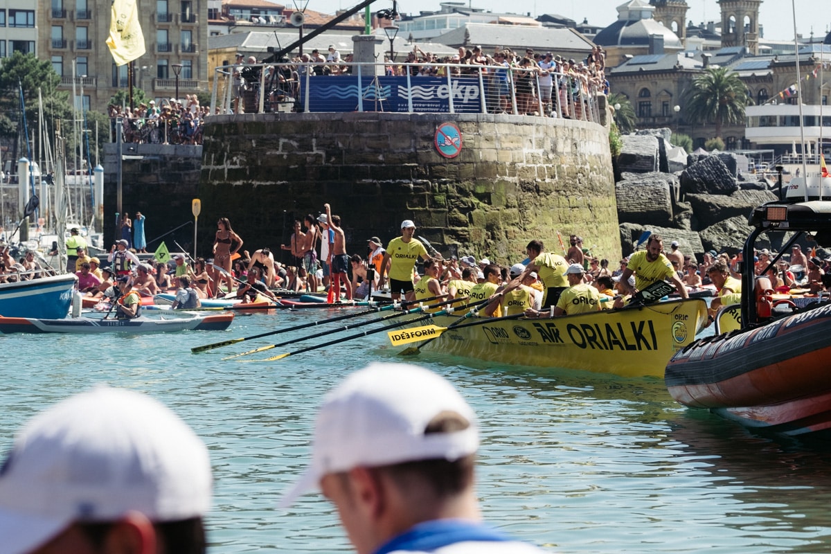 Orio quiso resarcir, no obstante, a su numerosa afición del descalabro de hace siete días y ofrecerles al menos una victoria en la de consolación. Salió con poco ritmo pero, una vez fuera de la bahía en aguas exteriores buscando la baliza de retorno, incrementó prestaciones y pasó a liderar la carrera.