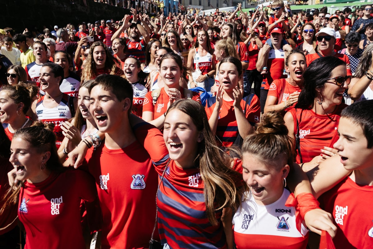 Bermeo-Urdaibai salió a morder desde la línea de salida para desincentivar a sus adversarias en el intento de voltear la previsión. La local Donostiarra siguió su ritmo pero sorprendentemente Hondarribia no y llegó a la mitad de prueba con una desventaja de 10 segundos que la descartaba en el largo de vuelta para empresas mayores.