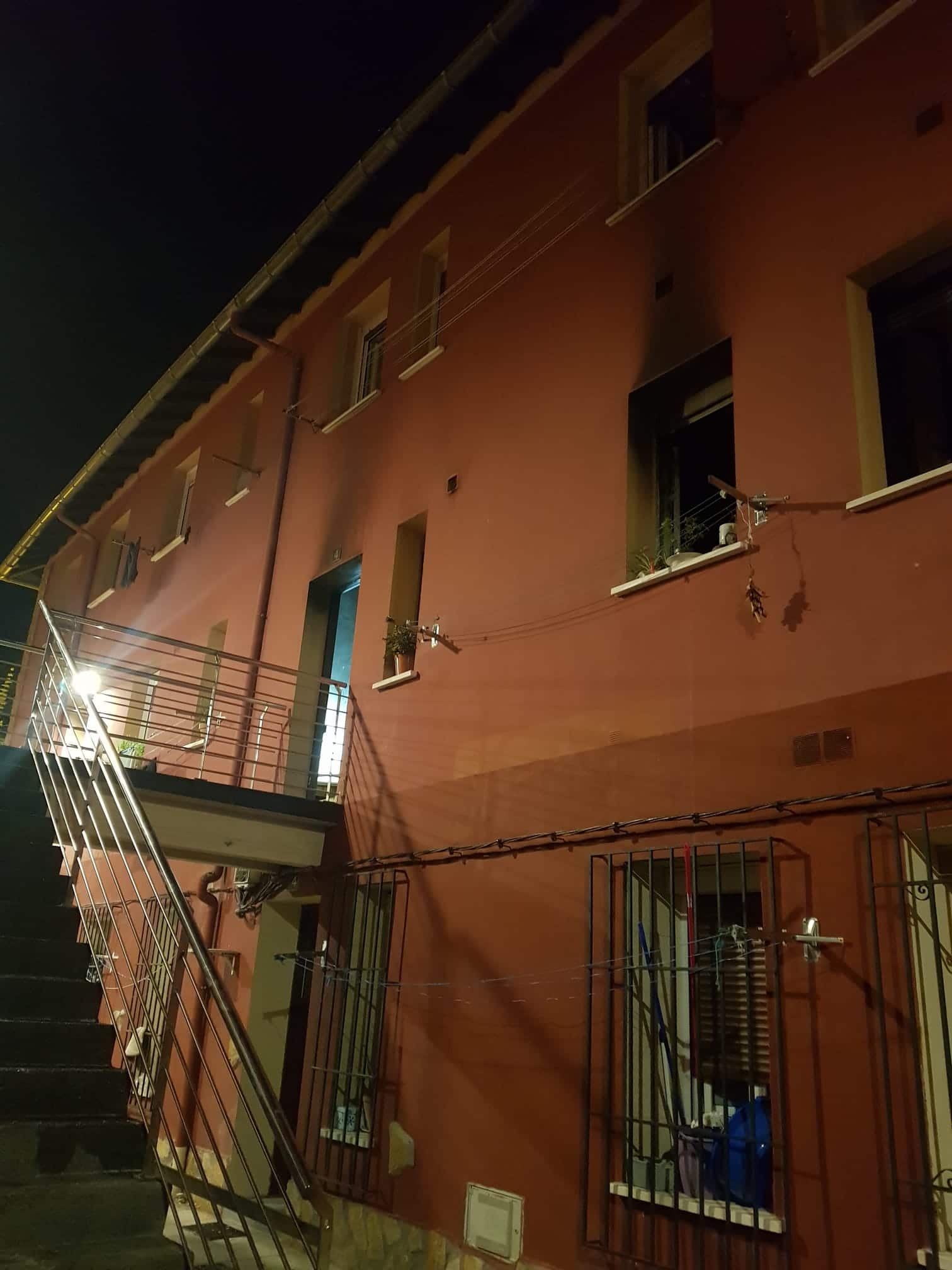 Situación a la llegada #Bomberos #Bidasoa: gente solicitando ayuda en ventanas fuego roto por fachada y saliendo humo de viviendas contiguas.