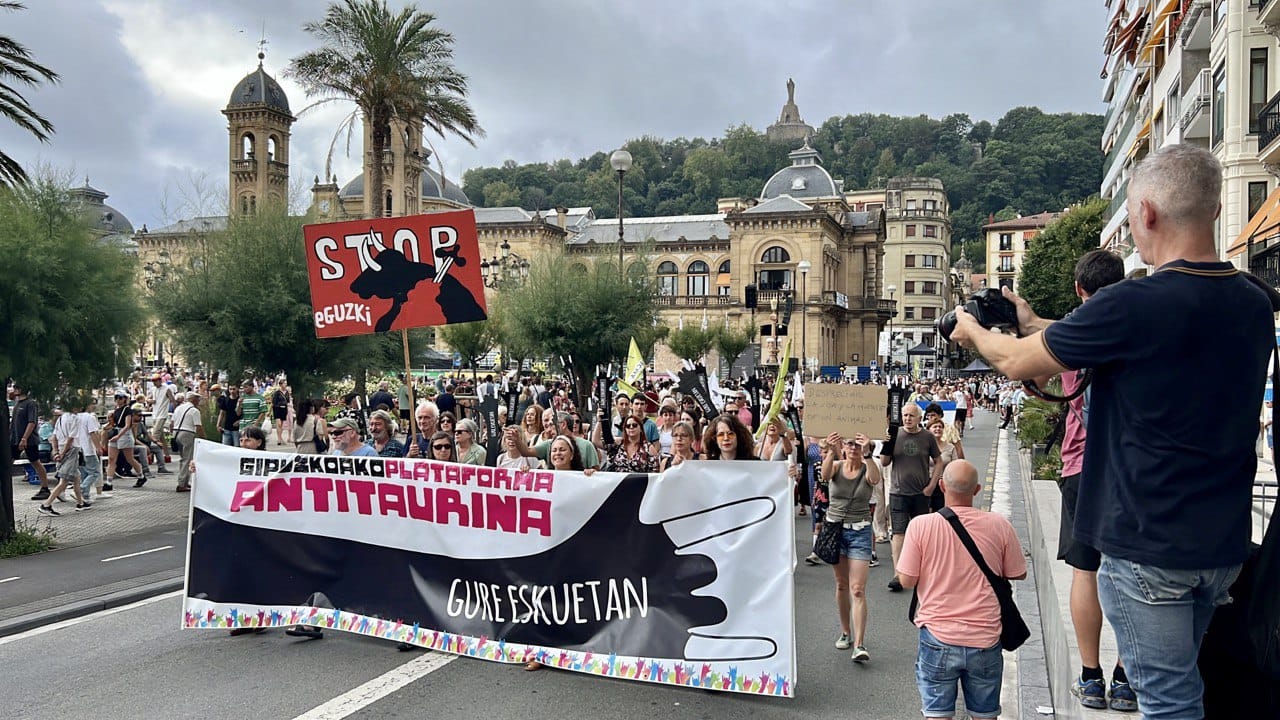 (EFE). Cientos de personas han participado este sábado en San Sebastián en una manifestación antitaurina para protestar por las corridas de toros organizadas en el coso de Illunbe coincidiendo con las fiestas de Semana Grande.