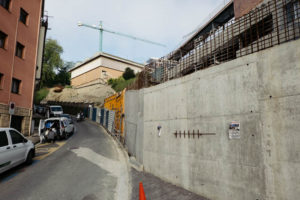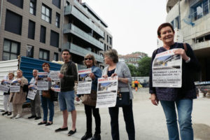 Vecinos de Amara Viejo han intentado impedir esta mañana a las 8 la actuación de las máquinas porque consideran excesiva la altura del muro que están levantando en la calle Amara. La llegada de la Ertzaintza, avisada por los trabajadores, ha supuesto el final de la concentración y la continuidad del trabajo.