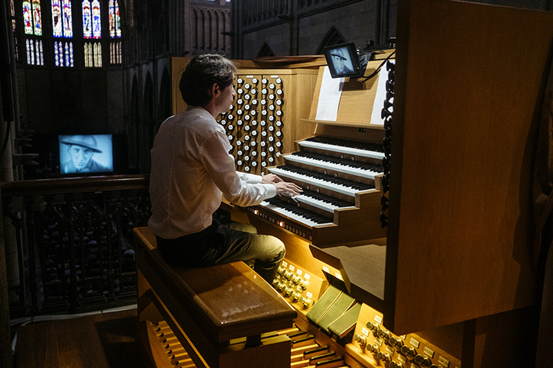 El monumental órgano neoclásico de la Catedral del Buen Pastor, con sus cinco teclados manuales, uno de pedal y 125 juegos, es uno de los instrumentos más versátiles de Gipuzkoa. Y palabras faltan para definir la brillantez del joven Karol Mossakowski, organista titular de la Catedral de Lille, que en 2017 publicó un DVD con su improvisación sobre esta película en colaboración con el archivo Gaumont Pathé.
