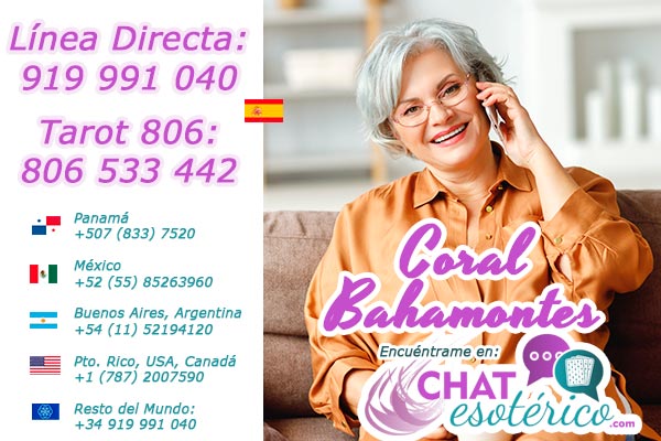 Coral Bahamontes, quien es una buena vidente de prestigio, podrá de una forma impresionante, darte las respuestas a las mayores incógnitas que abrazan a tu vida y la atormentan en la oscuridad de las interrogantes. ¿Una ayuda majestuosa, cierto? Gracias a esta la claridad, te invadirá al igual que la paz y el entendimiento y es por ello, que te sentirás liberado de cualquier cosa que te atormente.