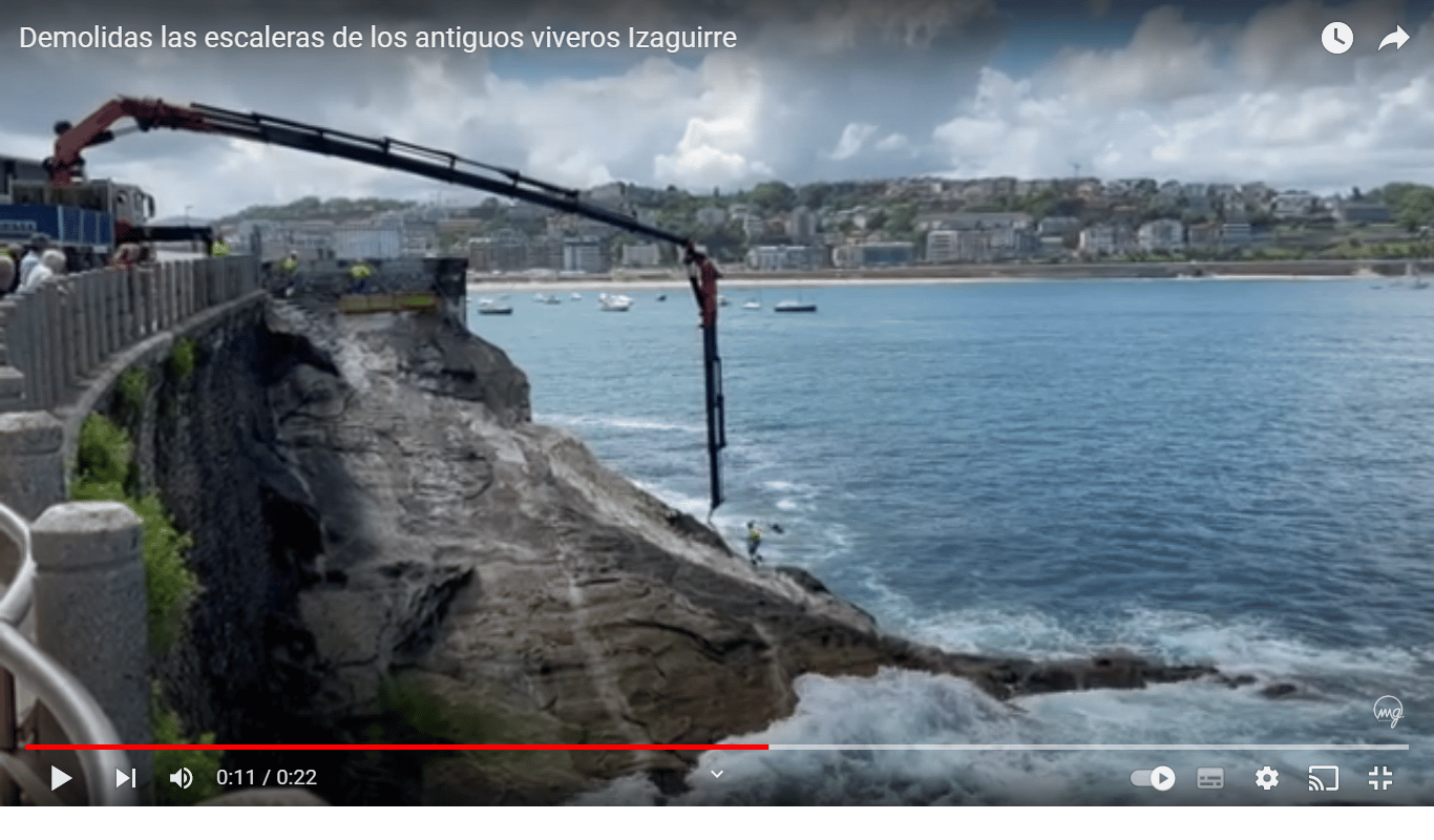 Demolidas las escaleras de los antiguos viveros Izaguirre que desde 1956 se situaban en el Paseo Nuevo donostiarra muy cerca del Aquarium. En el vídeo de Mikel Gasca se ve todo el proceso.