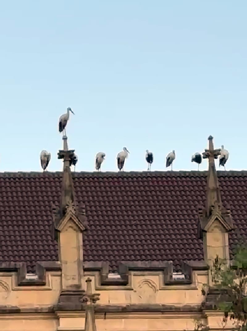 Cerca de 40 cigüeñas se detuvieron ayer jueves en Zorroaga para pasar la noche, como se ve en este vídeo de Borja Mozo, antes de continuar con su vuelo al sur. No es una imagen nada frecuente, verlas por Donostia, y aún menos de relax, como explicaron desde Eguzki a DonostiTik.
