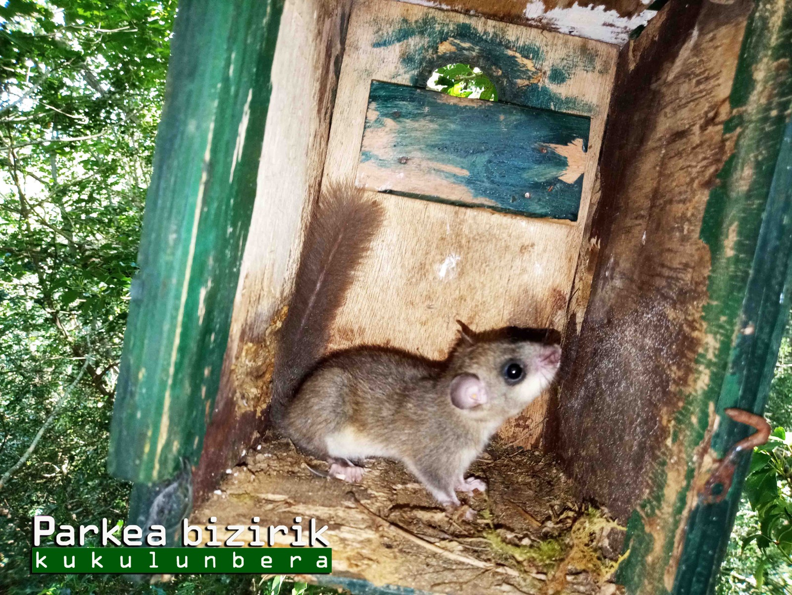 Recuerda Parkea Bizirik kukulunbera que como todos los años el lirón gris (Glis glis) ha vuelto para hospedarse en las cajas nido. Allí construye su nido para descansar o parir a sus crías; otras veces transforma la caja nido en una despensa de bellotas y castañas. En otoño ingiere gran cantidad de frutos secos para aumentar las reservas de grasa y prepararse para la hibernación que se extiende de noviembre a abril.